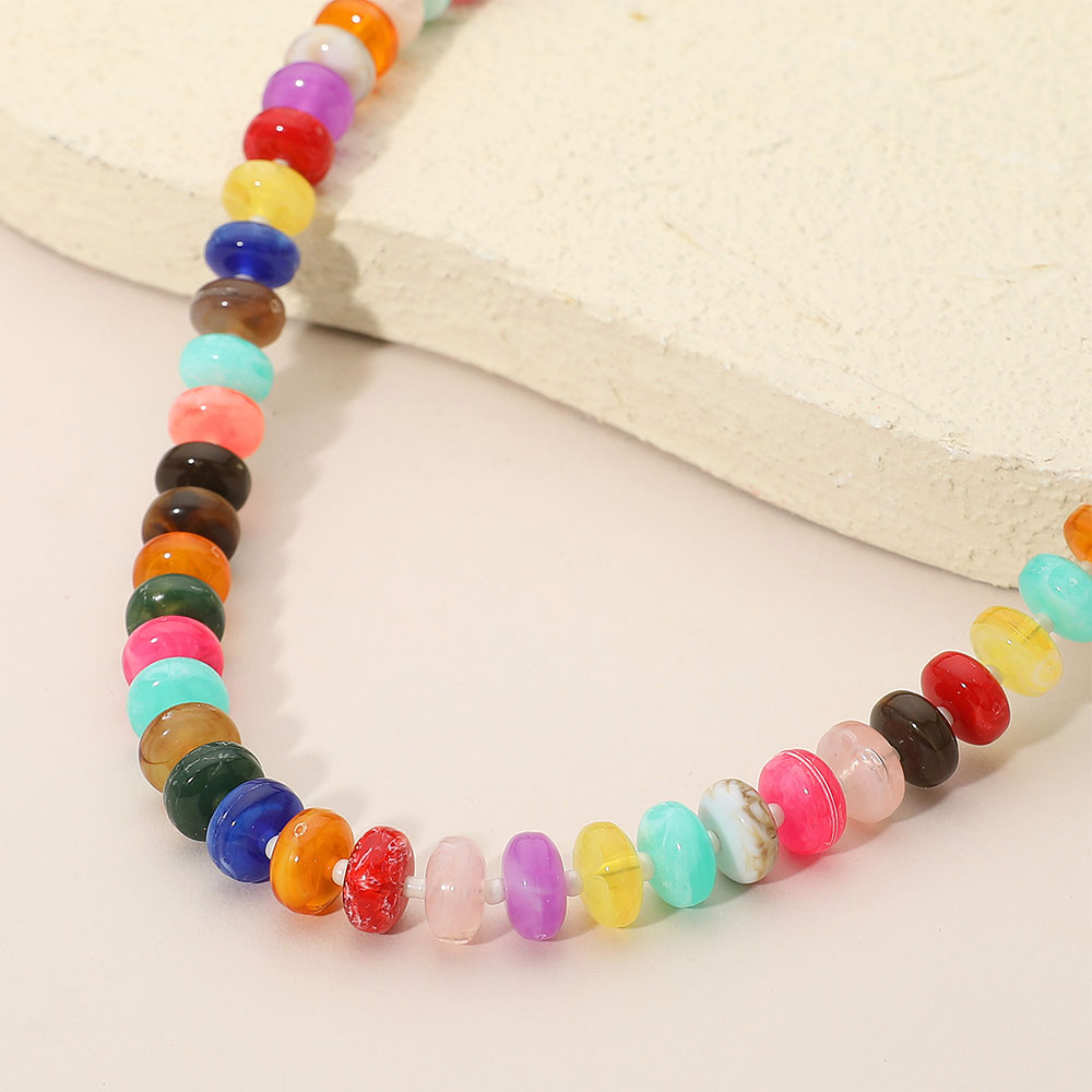 Chunky Multicolor Resin Flat Disc Beaded Necklace