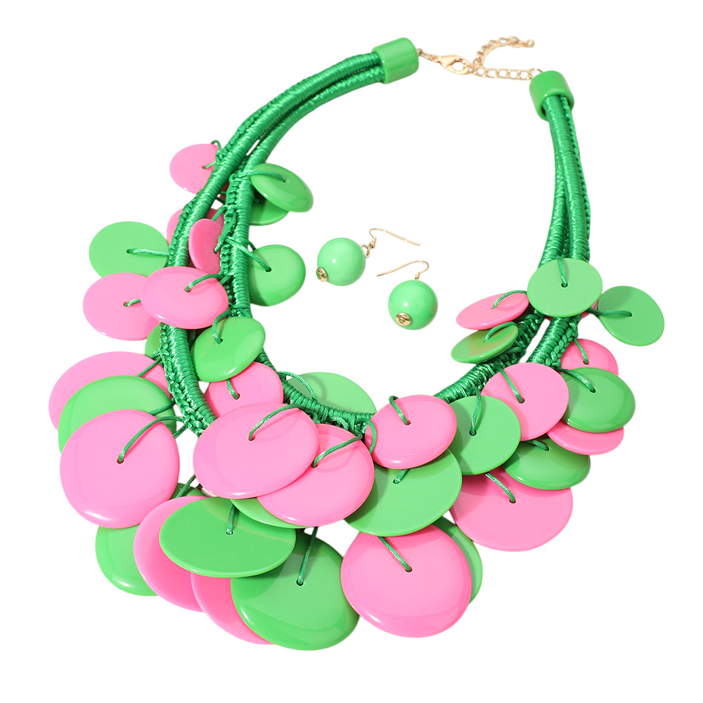 Chunky Oversized Acrylic Disc Beaded Thread Statement Necklace