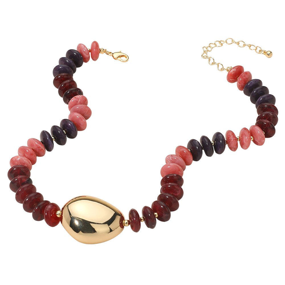 Details • Necklace Size : 18" + 3.25" L • Decor Size : 1.2" L • Eye-catching chunky necklace featuring polished beads in varied tones and a bold central pendant. Designed to elevate both casual and dressy looks, this statement piece brings modern style with a touch of elegance, making it the perfect accessory for layering or wearing solo. • Lead and Nickel Compliant