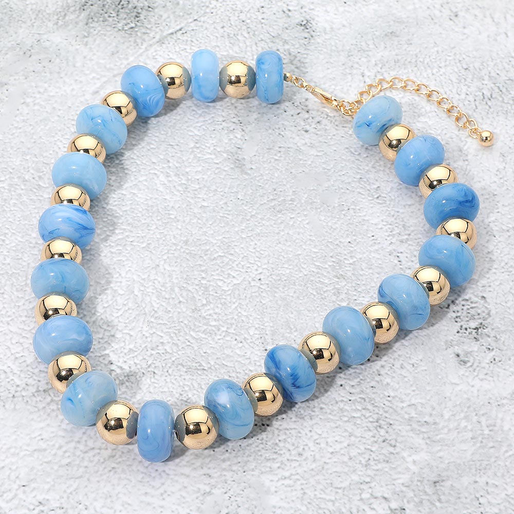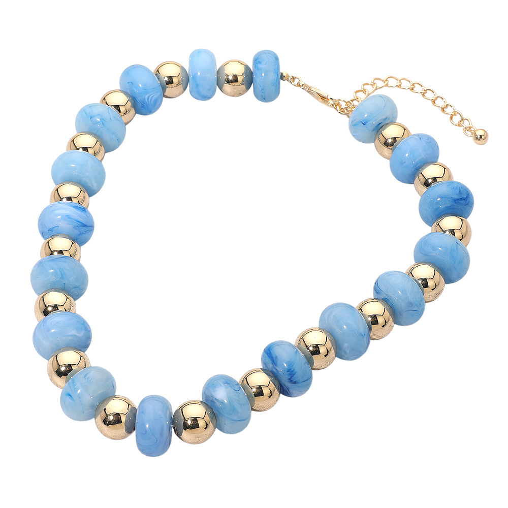 Chunky Resin Disc Metal Ball Beaded Statement Necklace