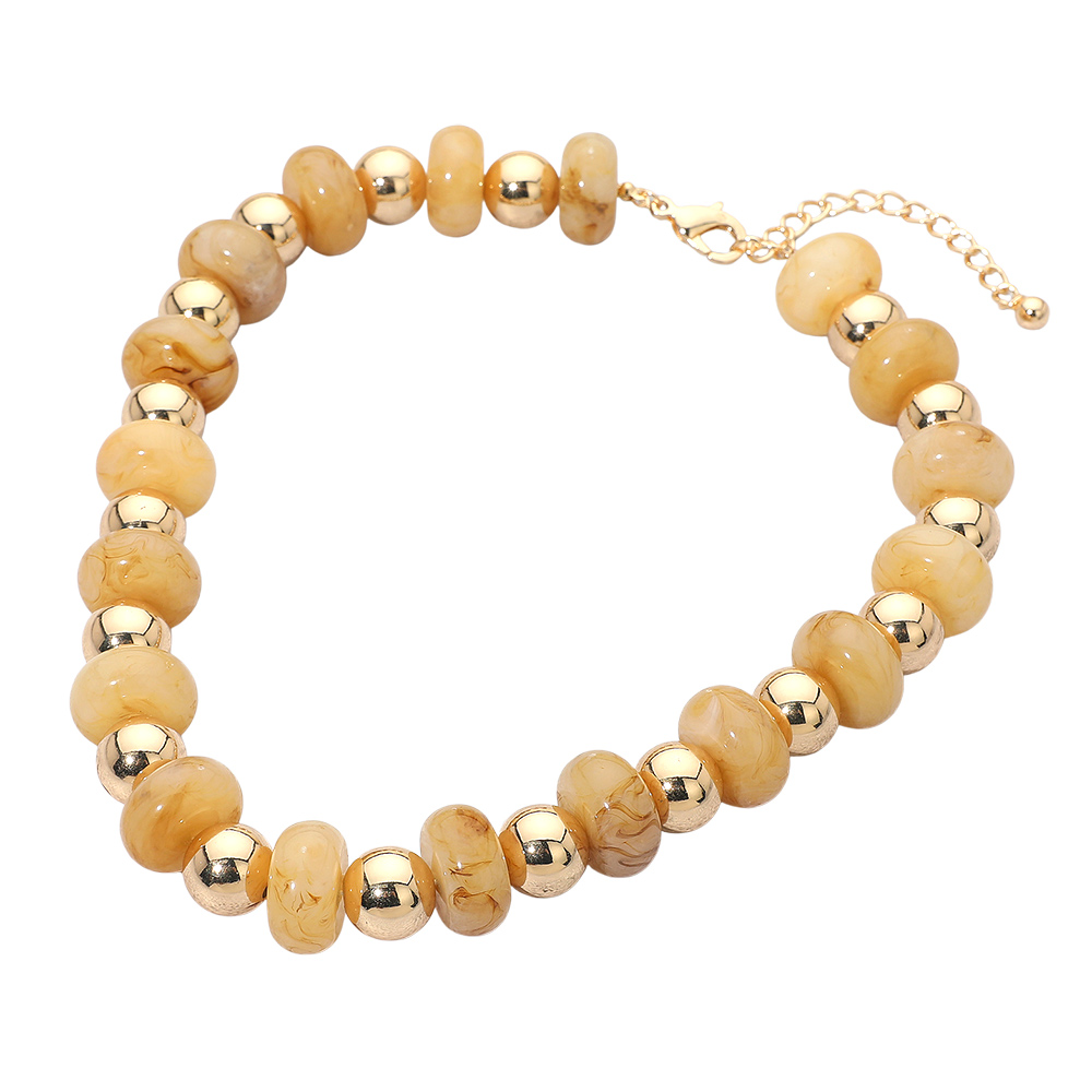 Chunky Resin Disc Metal Ball Beaded Statement Necklace