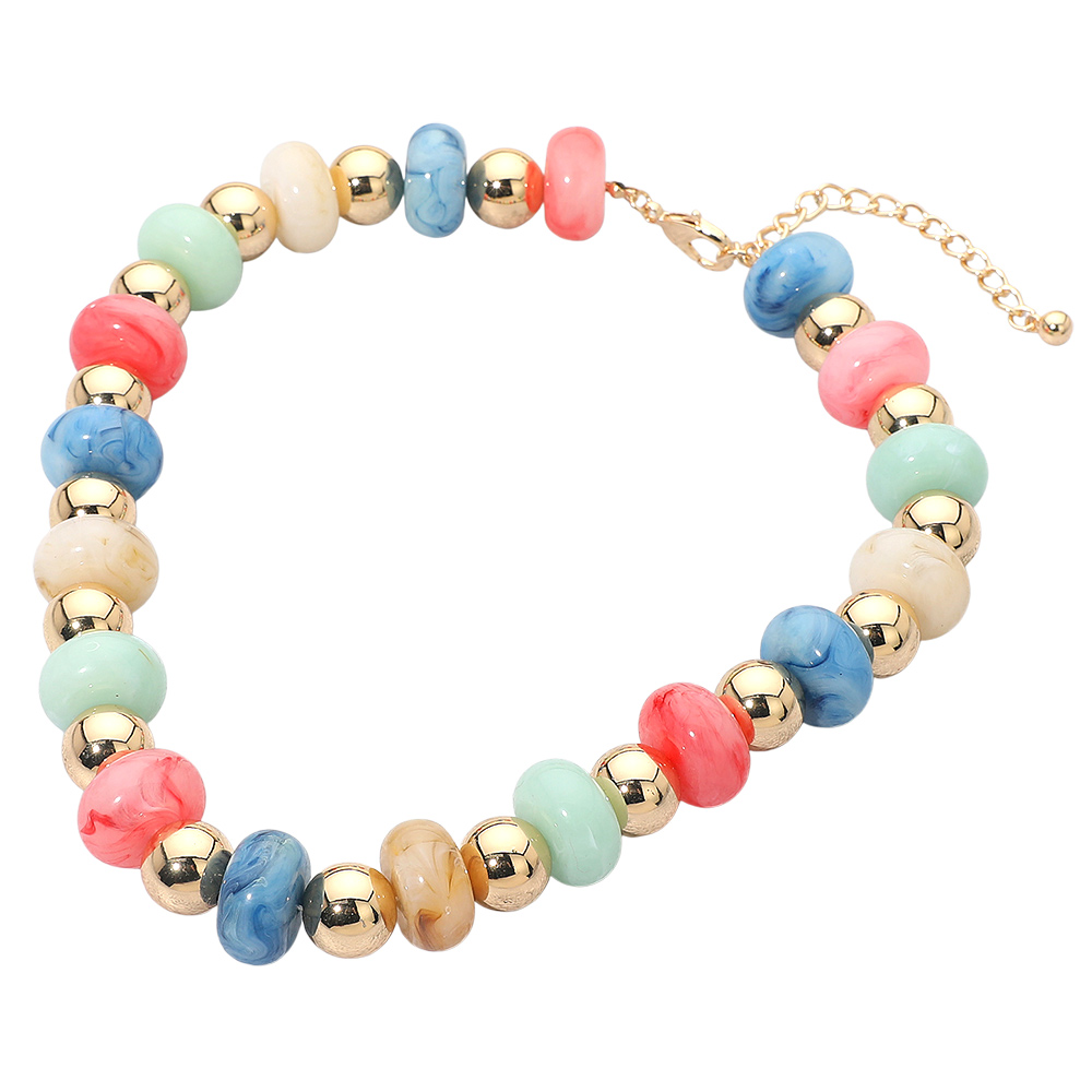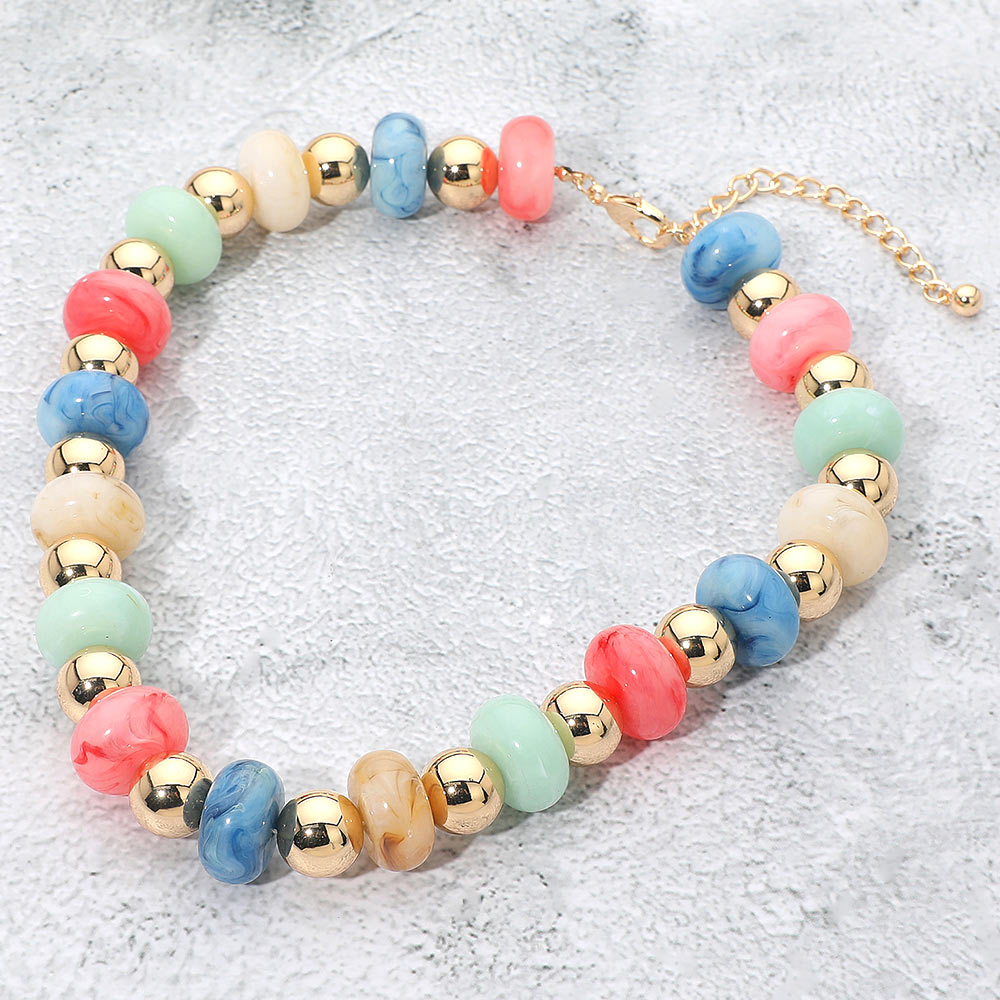 Chunky Resin Disc Metal Ball Beaded Statement Necklace