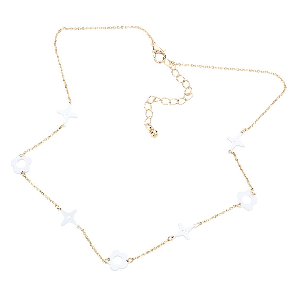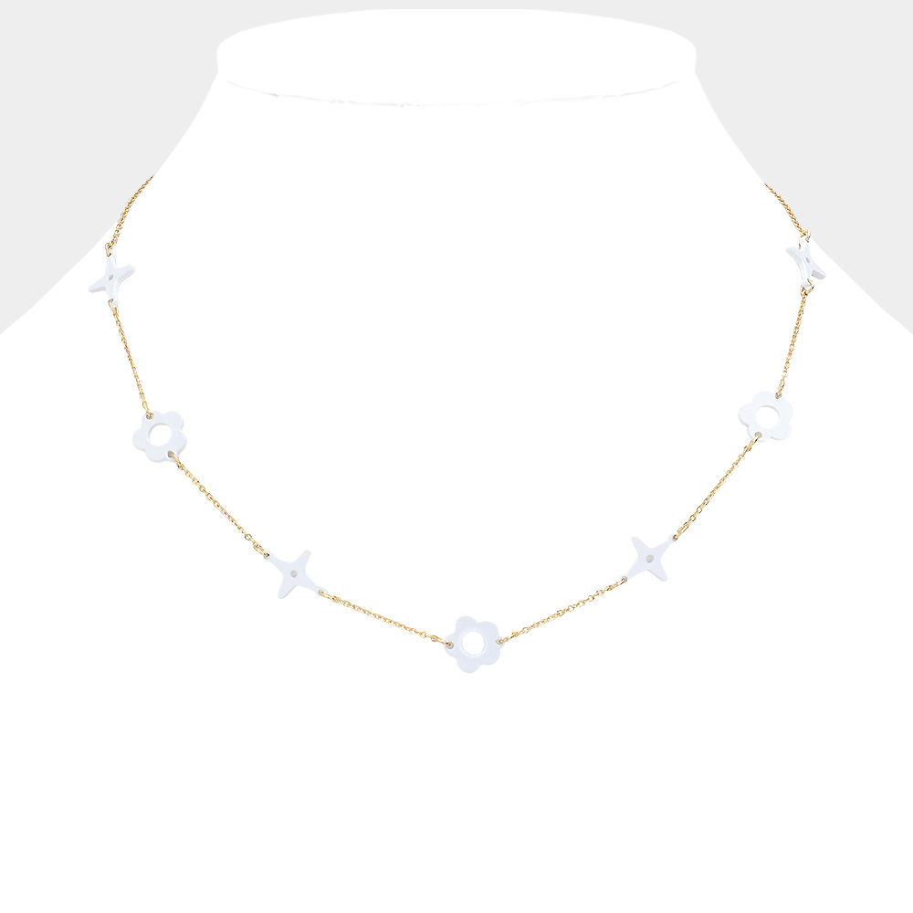 Marquise Round Stone Cluster Colored Metal Leaf Embellished Necklace