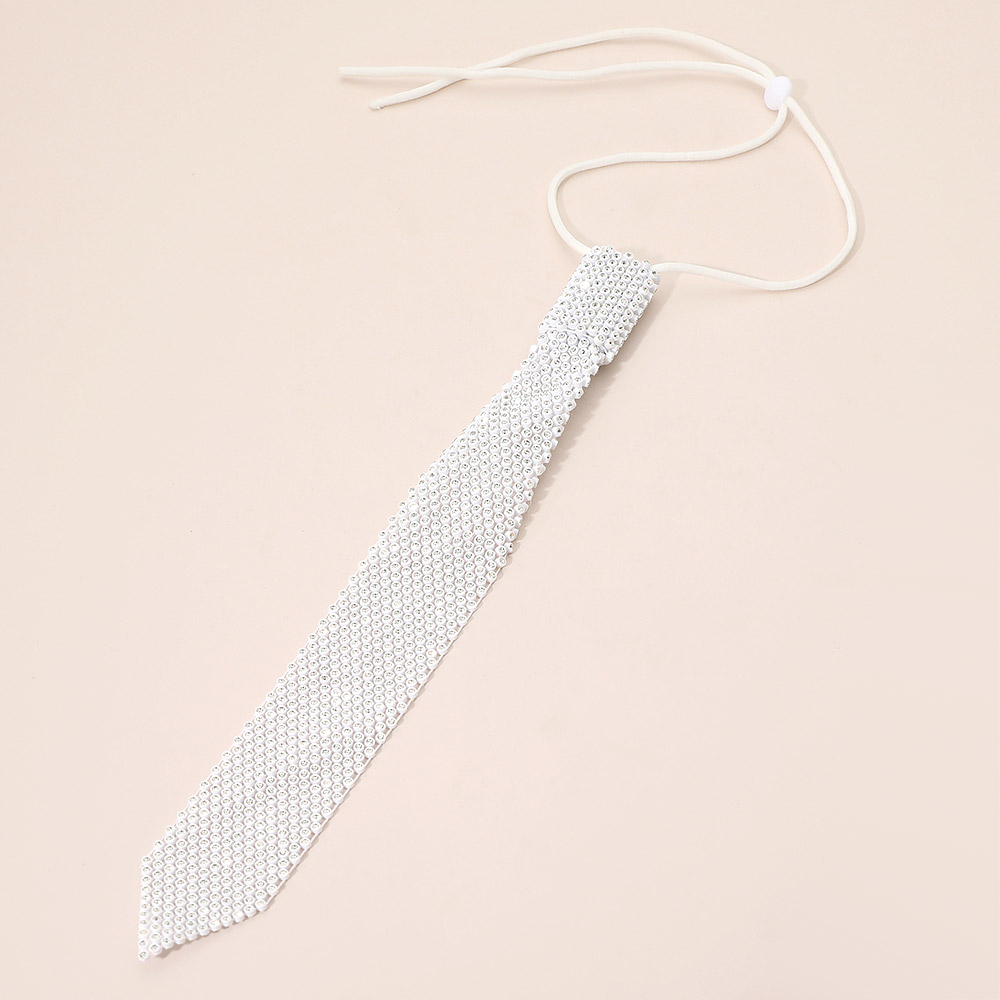 • Add a bold sparkle to your outfit with this crystal-embellished tie necklace featuring an adjustable strap for a perfect fit. Its sleek design and shimmering detail make it ideal for parties, concerts, or nights out, giving any look a chic and edgy finishing touch.