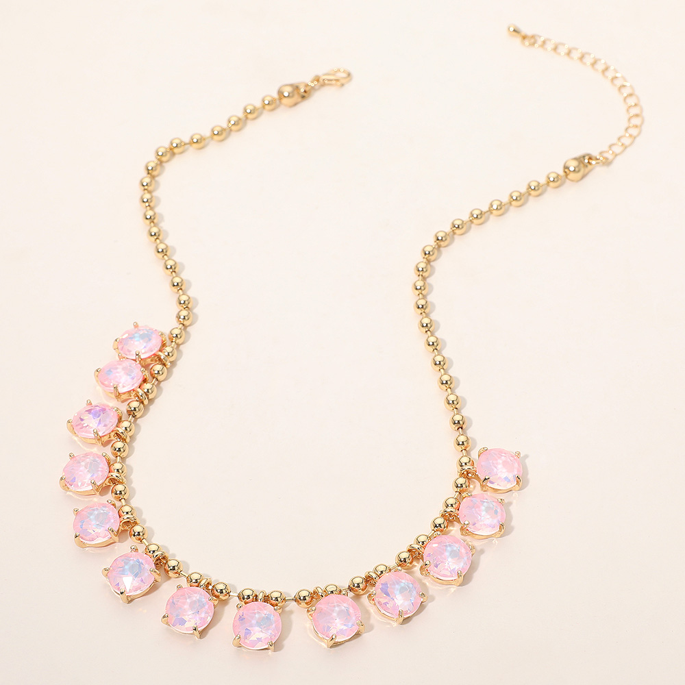 • Elegant necklace featuring a delicate beaded chain accented with faceted round stones arranged along the neckline. Designed to add refined sparkle and balanced detail, this versatile piece suits everyday wear, special occasions, gifting, and boutique collections with a timeless, polished appeal.