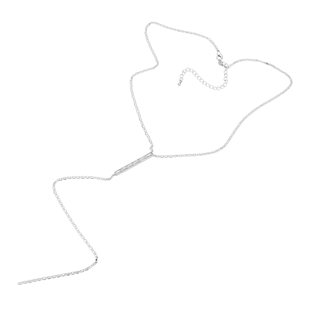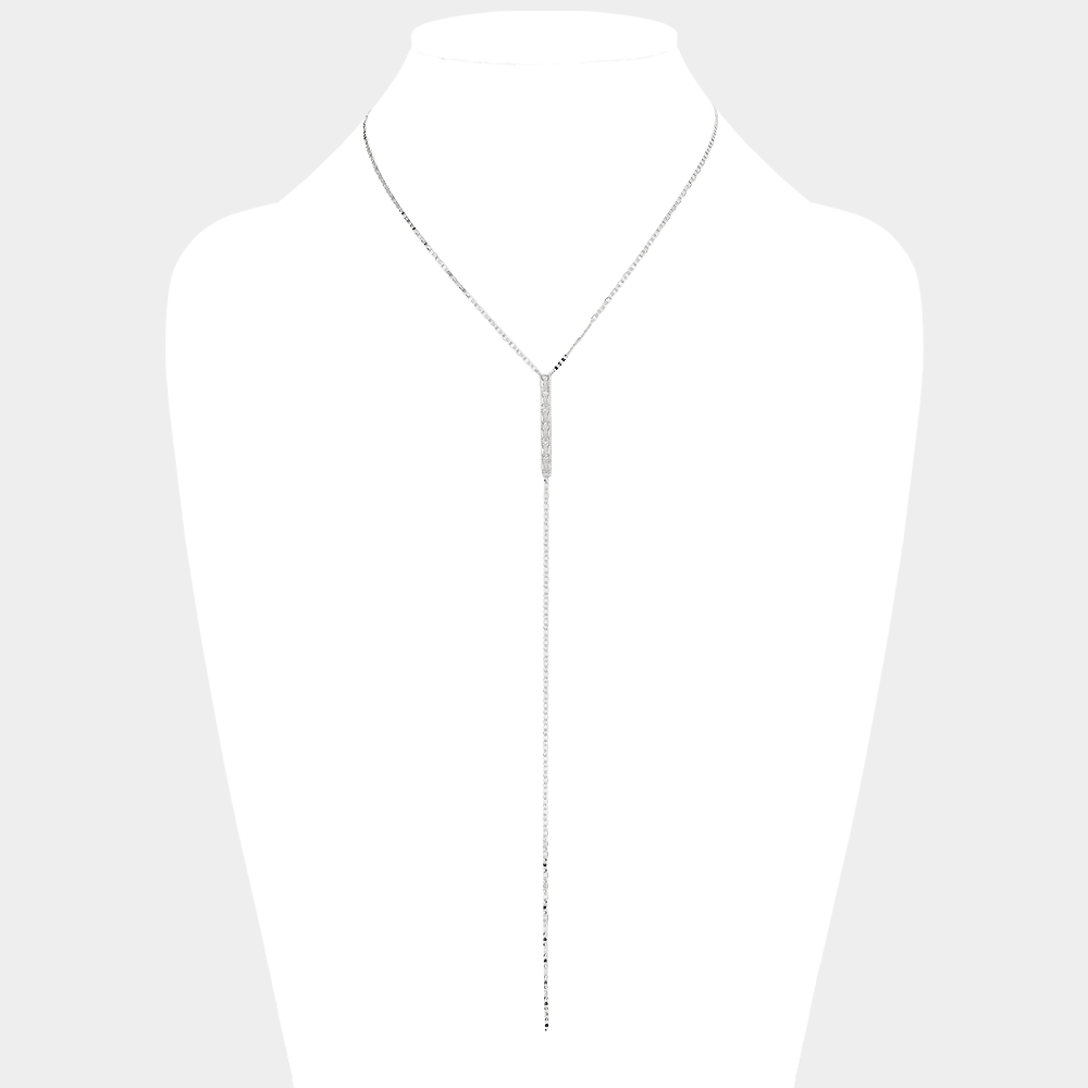 CZ Embellished Rectangle Accented Brass Metal Y Necklace