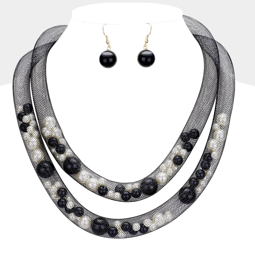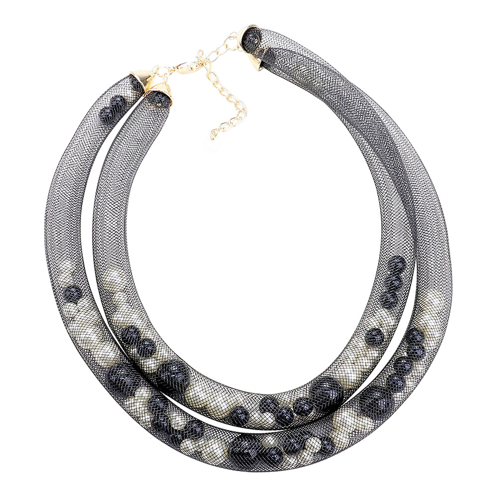 Pearl Accented Triple Layered Mesh Bib Necklace