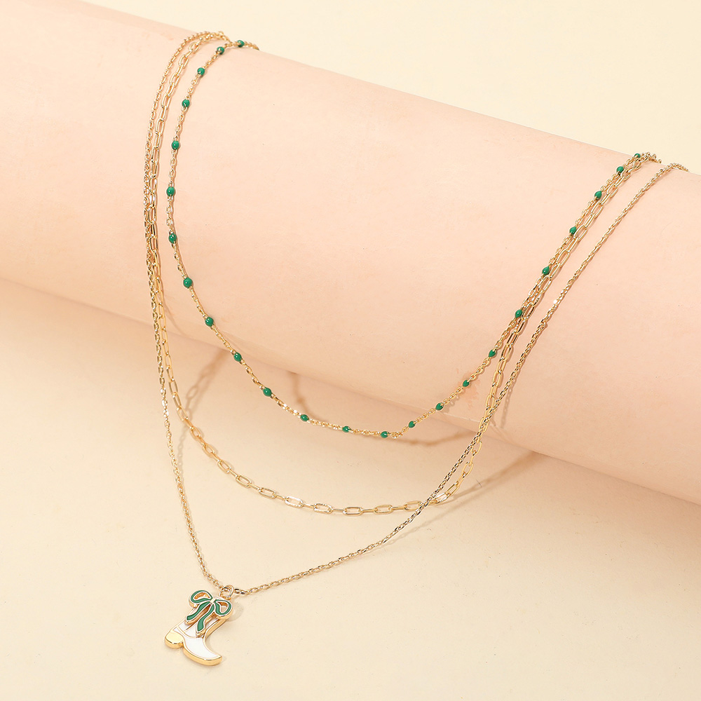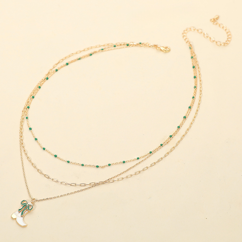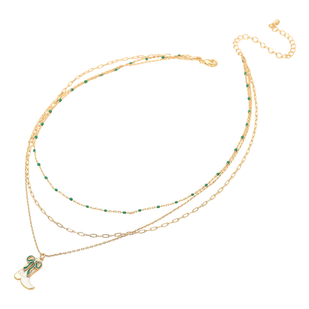 Enamel Bow Cowboy Boot Pendant Triple Layered Necklace