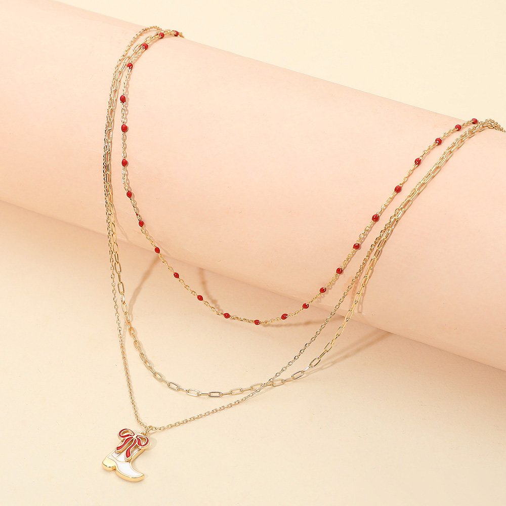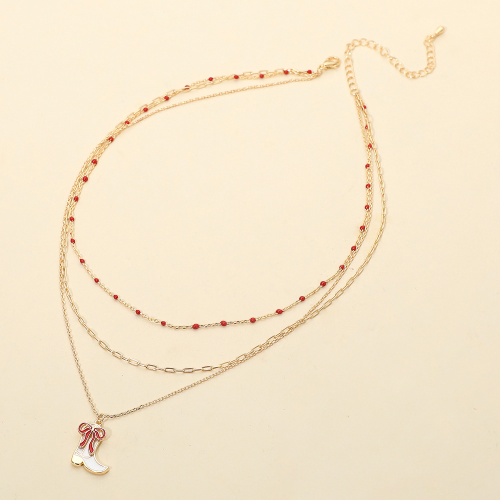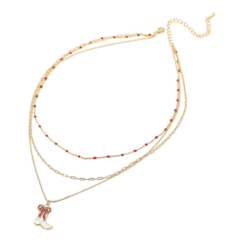 Enamel Bow Cowboy Boot Pendant Triple Layered Necklace