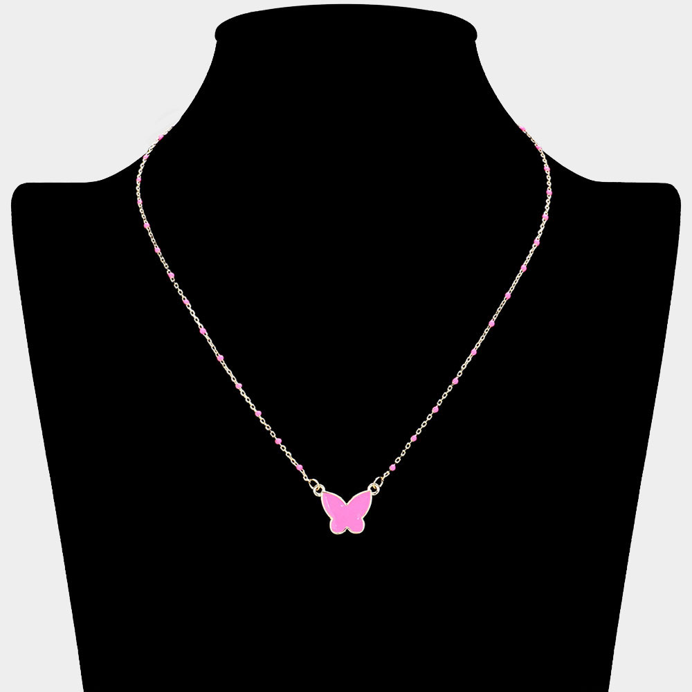 Enamel Butterfly Pendant Satellite Chain Necklace