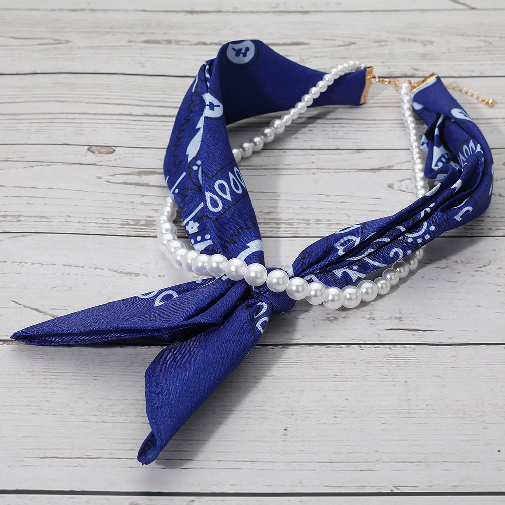 Details • Necklace Size : 20" + 3" L • Decor Size : 4" L • Print may vary • Turn heads with this pearl and scarf statement necklace, blending classic elegance with bold style. The chic combination of lustrous pearls and a patterned scarf creates a versatile accessory that elevates any outfit, perfect for casual charm or standout sophistication. • Lead and Nickel Compliant