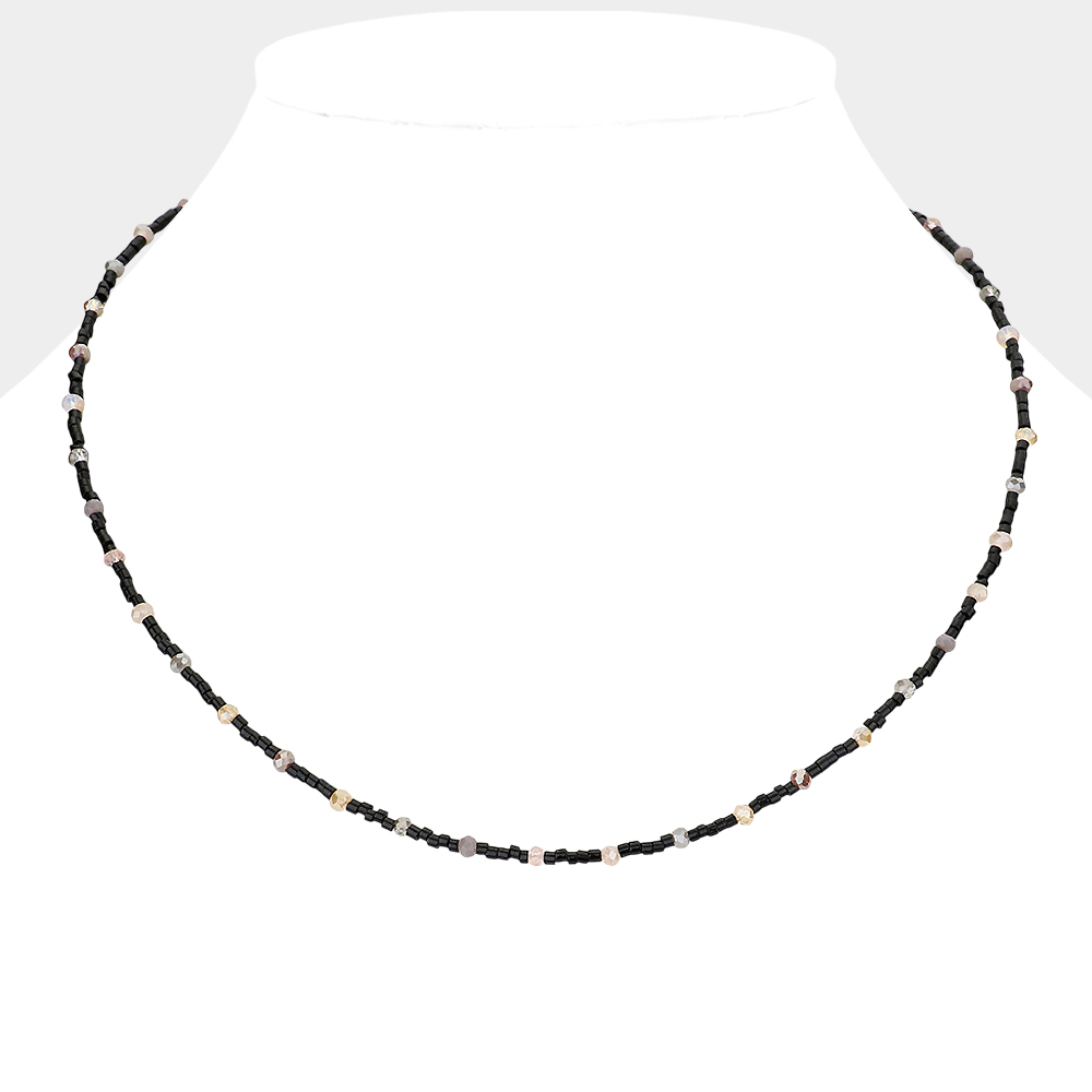 Multi Layered Wood Heishi Beaded Bib Necklace