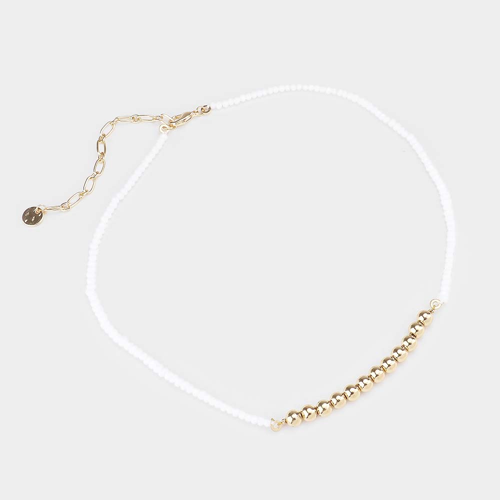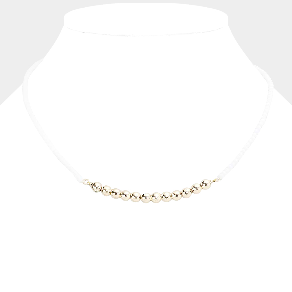Metal Open Quatrefoil Pendant Faceted Beaded Layered Necklace