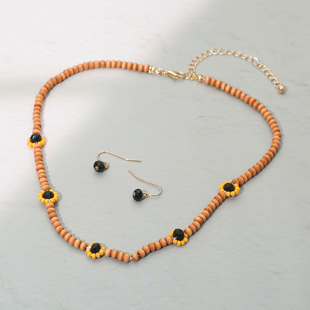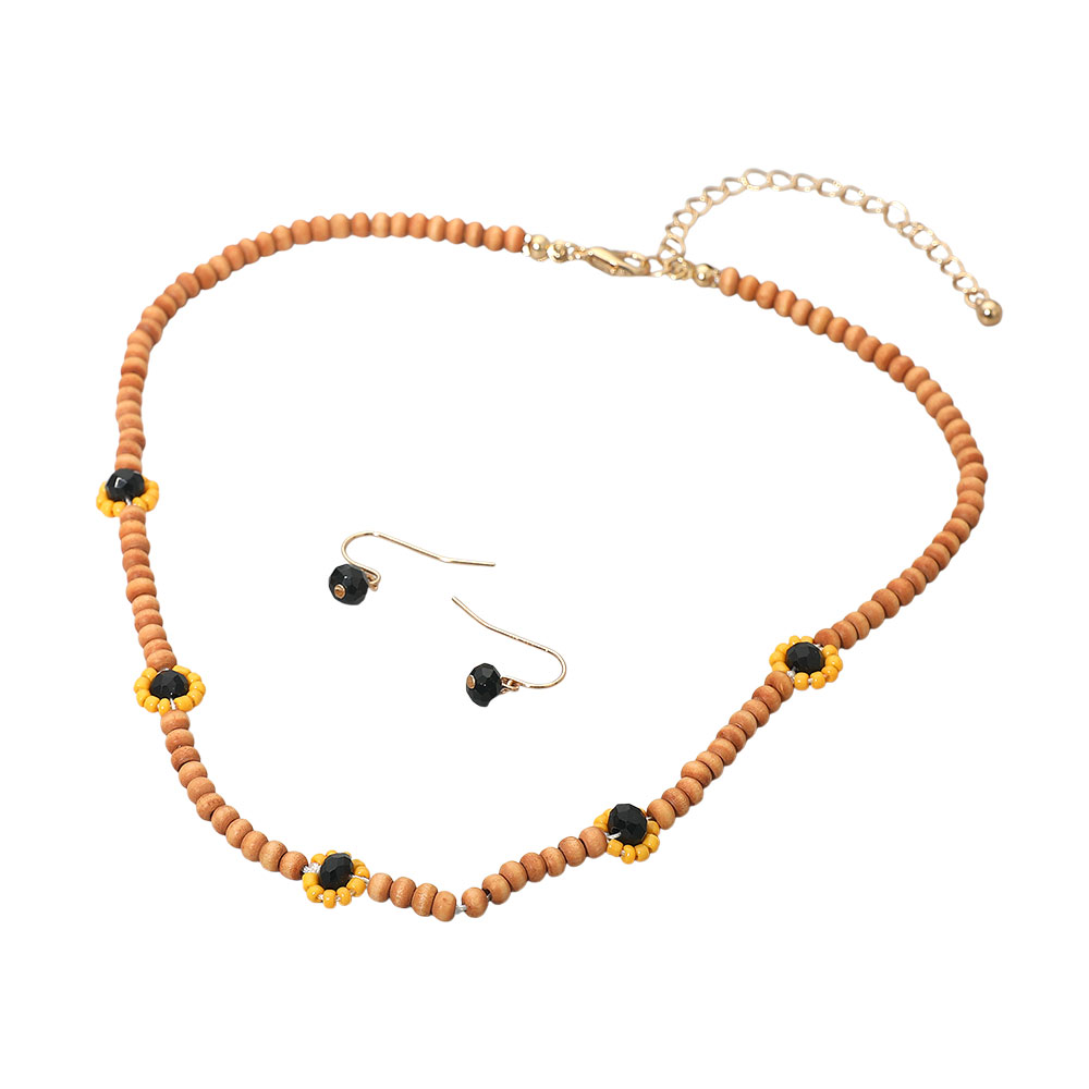 Faceted Floral Accent Wooden Beaded Necklace Faceted Floral Accent Wooden Beaded Necklace Faceted Floral Accent Wooden Beaded Necklace