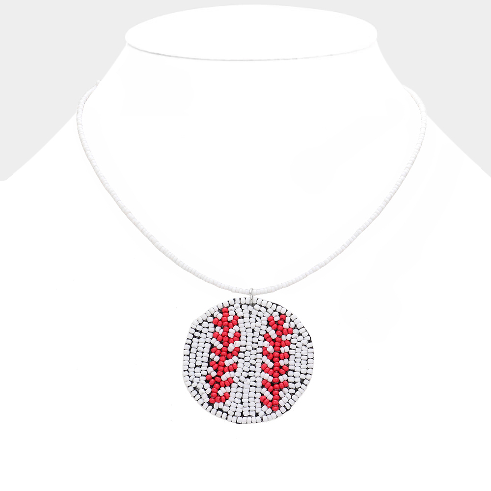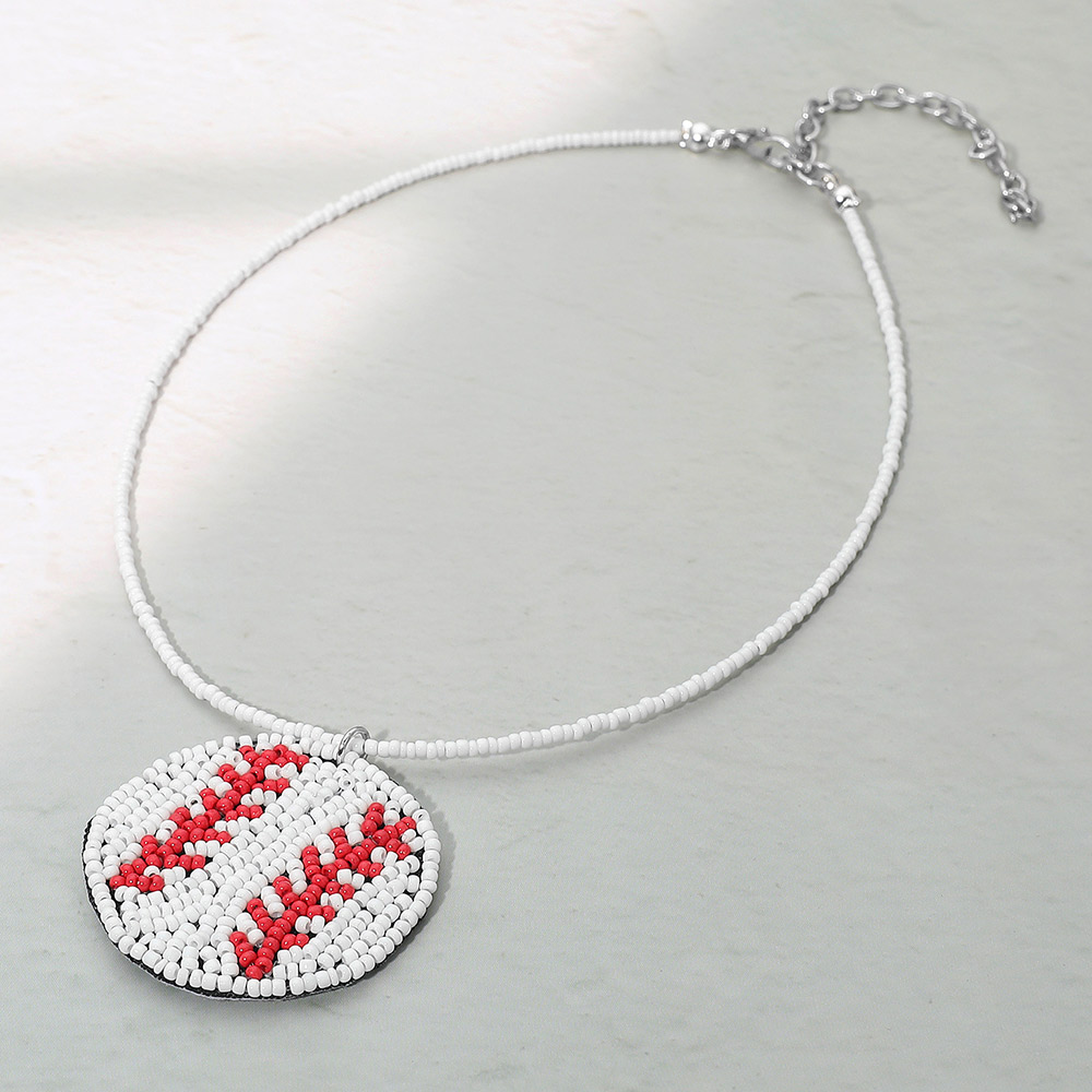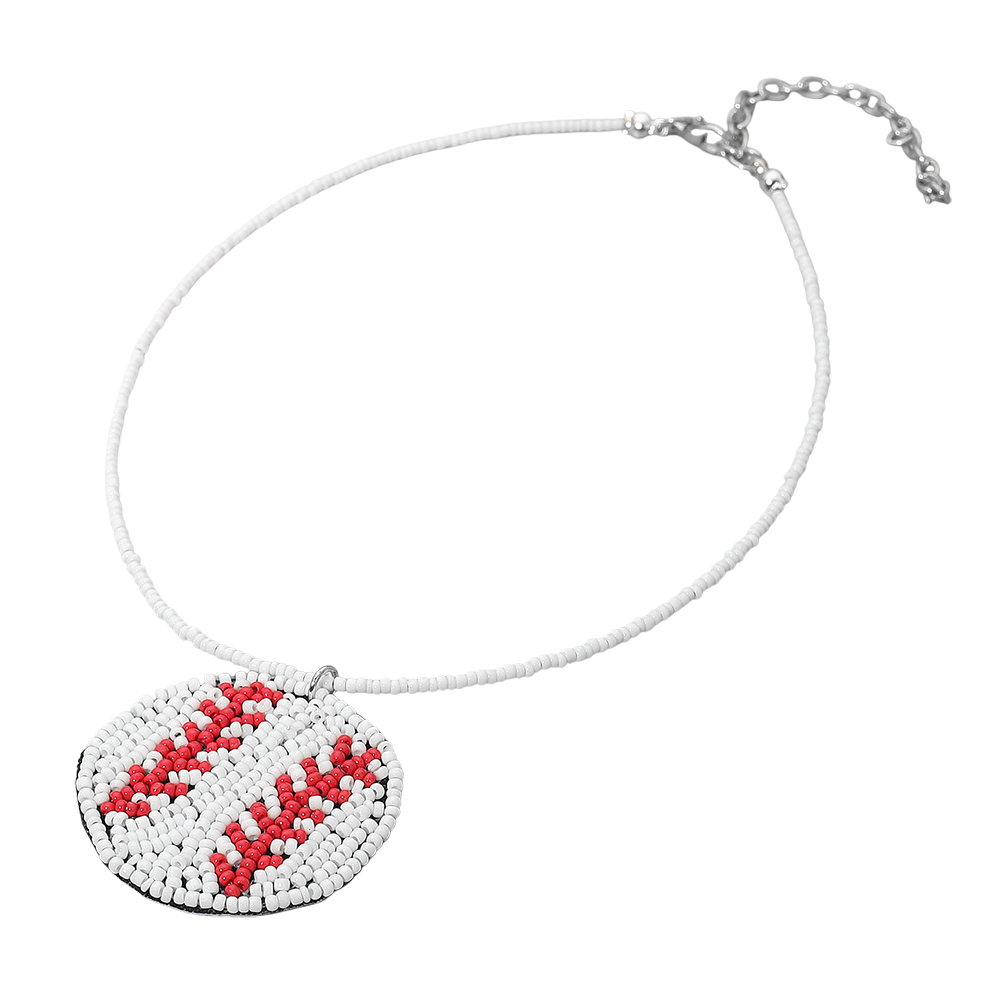 Details • Necklace Size : 14" + 3" L • Pendant Size : 1.75" X 1.6" • Sport-inspired necklace featuring a round baseball pendant handcrafted with tiny seed beads. A stylish way to show team spirit or complete a gameday look. Lightweight, fun, and easy to wear, this necklace adds sporty charm to casual outfits and fan gear. • Lead and Nickel Compliant • Made In India