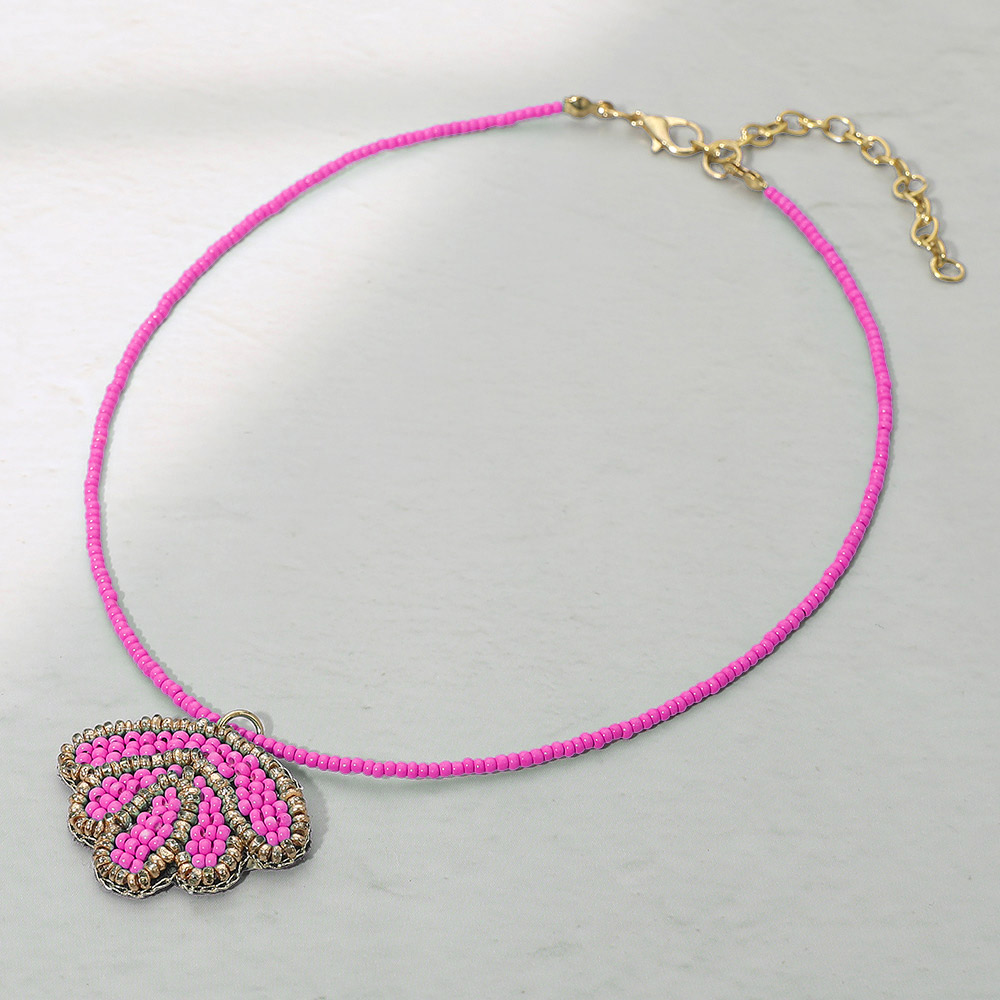 Felt Back Seed Beaded Shell Pendant Necklace