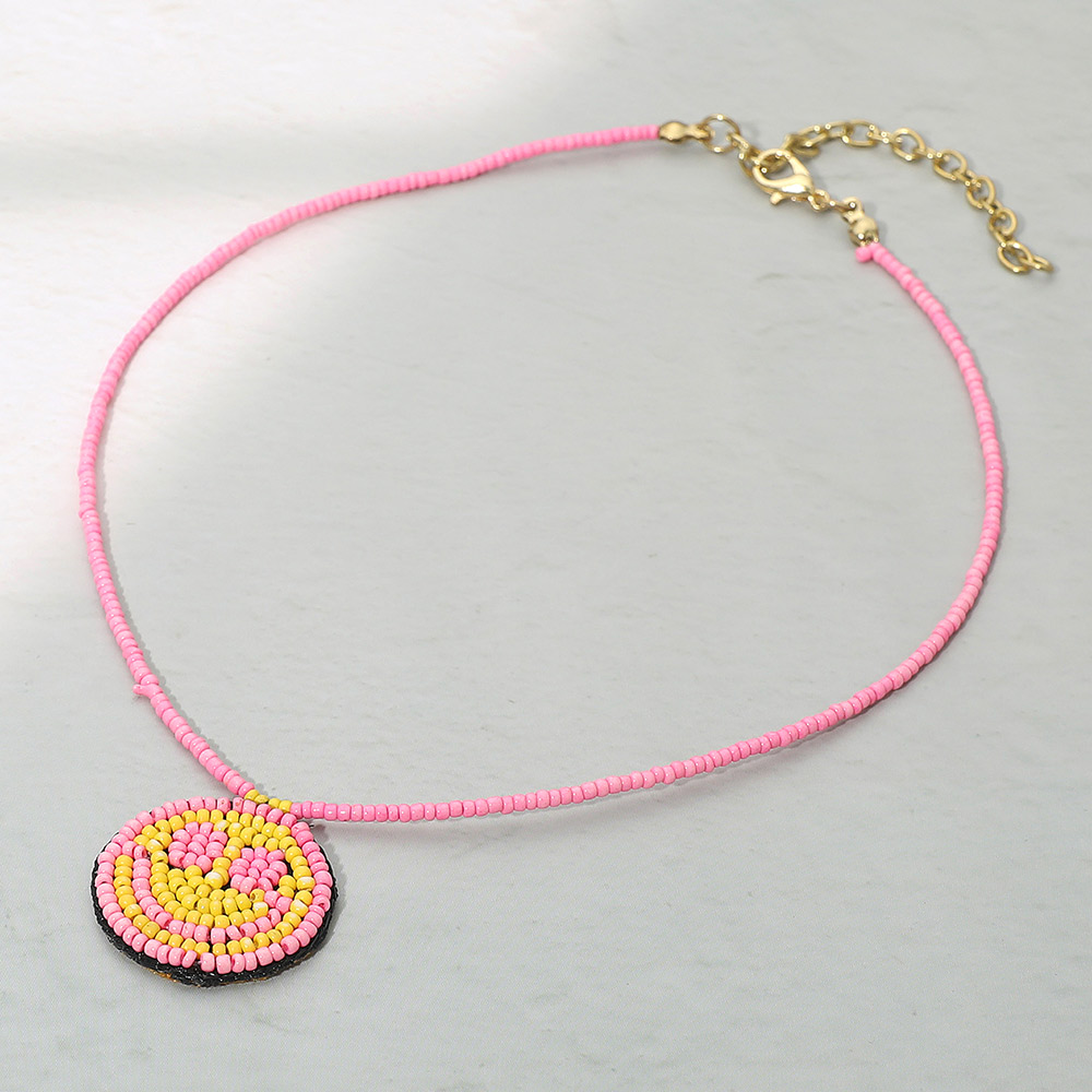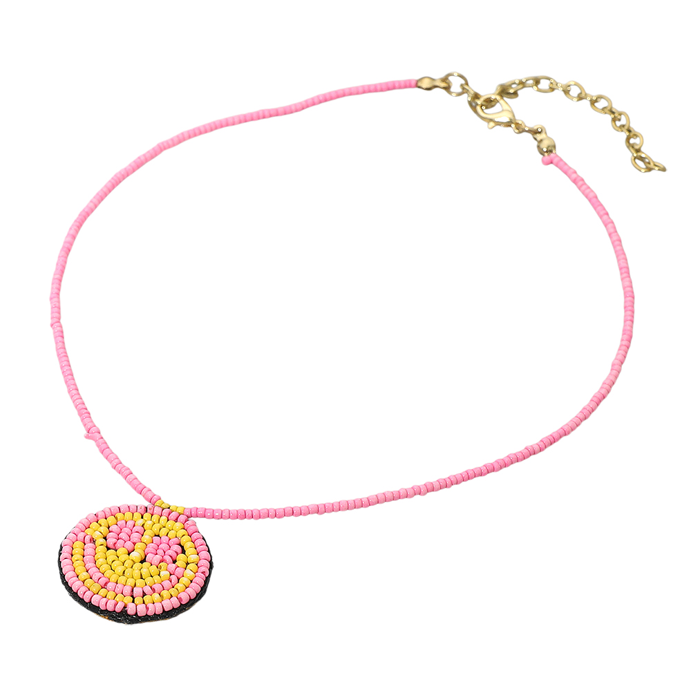 Felt Back Seed Beaded Smile Pendant Necklace