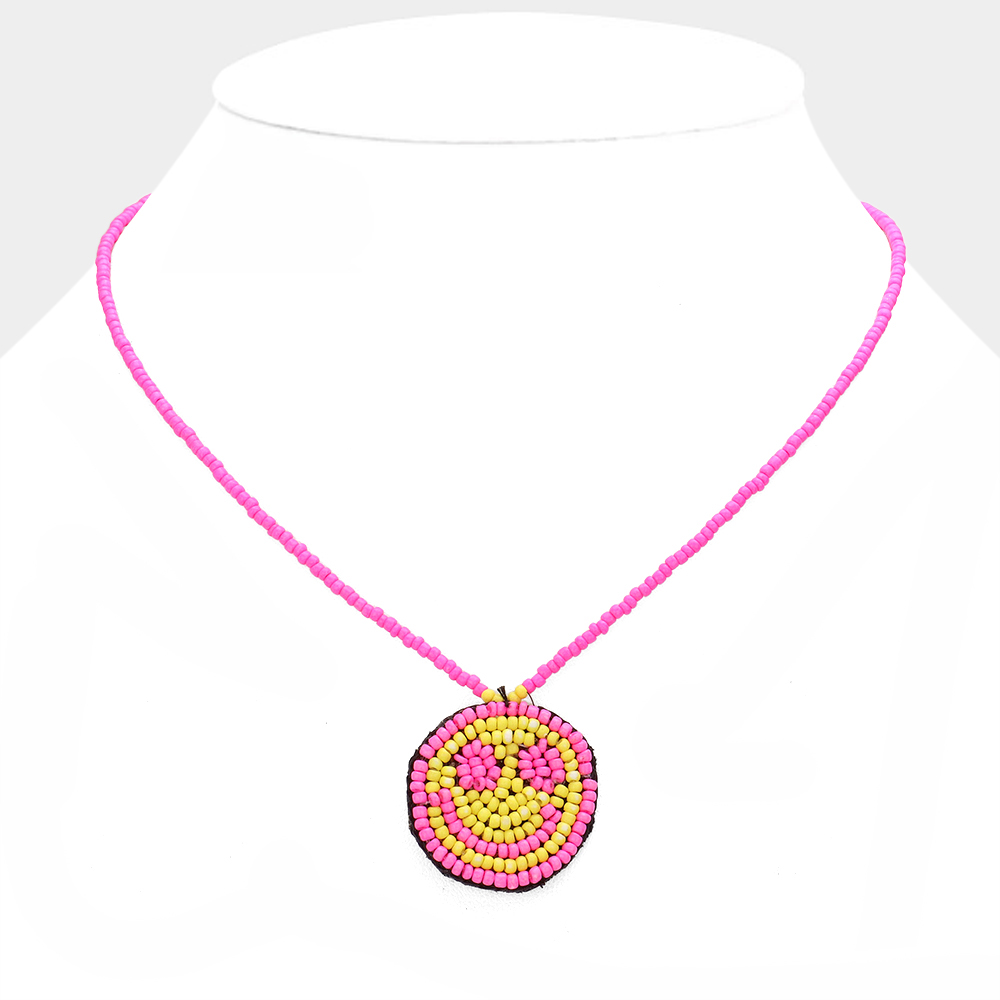• Playful smiley face pendant necklace designed with tiny seed beads for a fun and uplifting look. Perfect for adding a touch of positivity to casual outfits, this lightweight piece brings a cheerful and trendy vibe to everyday wear or layered jewelry styles.