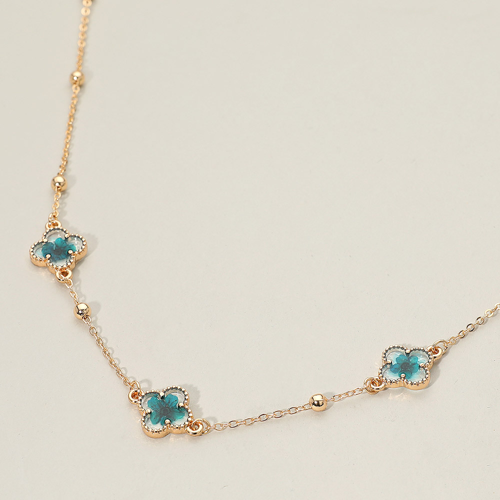 Floral Encased Quatrefoil Charm Station Necklace Floral Encased Quatrefoil Charm Station Necklace Floral Encased Quatrefoil Charm Station Necklace