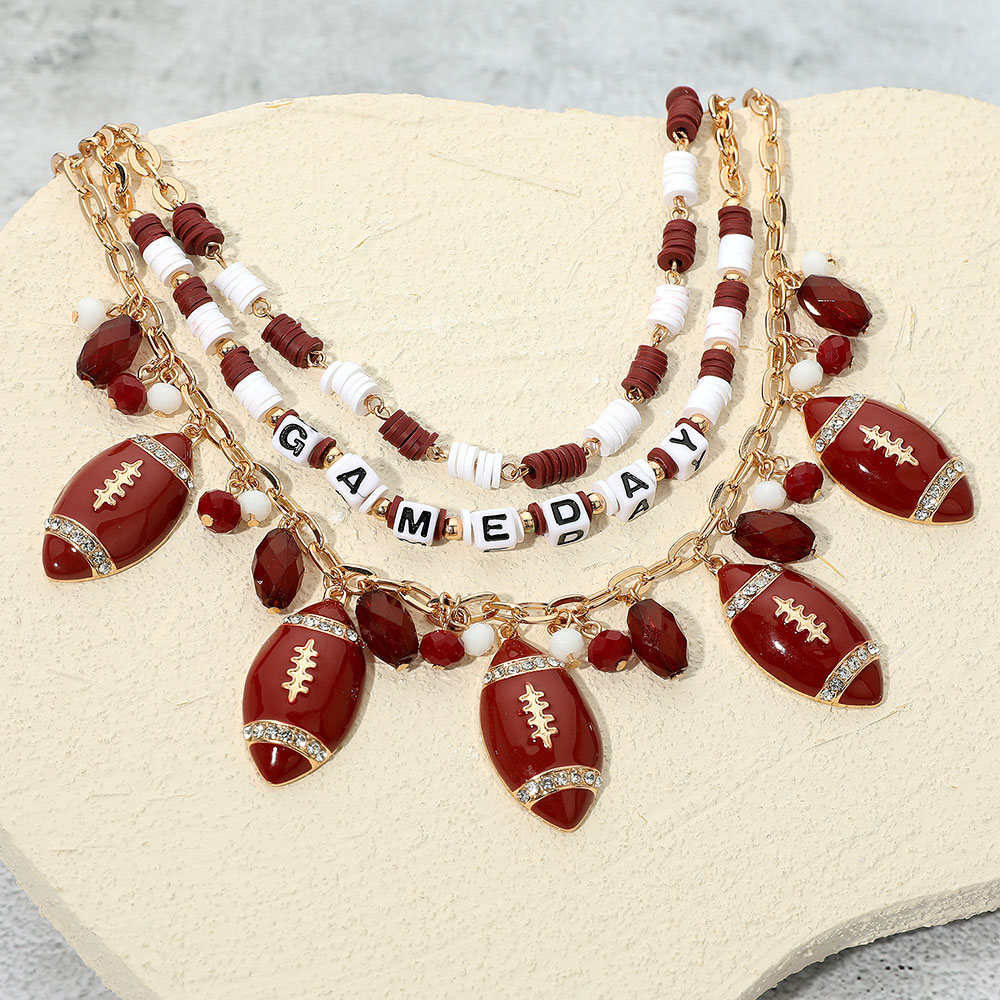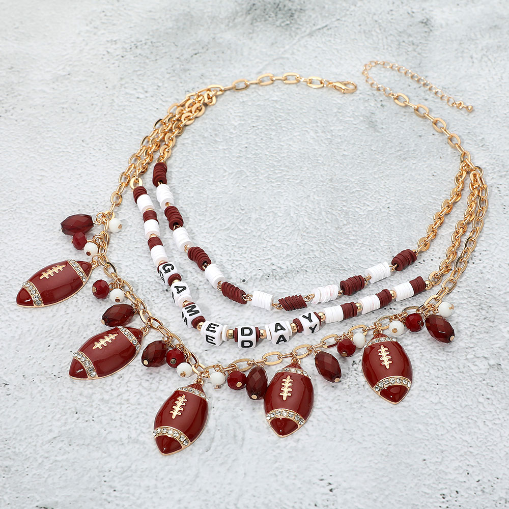 Football Charm Embellished GAME DAY Heishi Beaded Layered Necklace Football Charm Embellished GAME DAY Heishi Beaded Layered Necklace Football Charm Embellished GAME DAY Heishi Beaded Layered Necklace