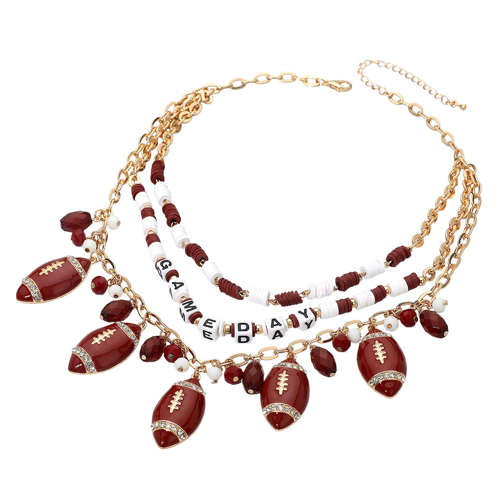 • Layered necklace featuring football charms, gameday letter beads, and playful accents. A spirited accessory to show team pride, add energy to gameday looks, and complete fan outfits with fun layered style.