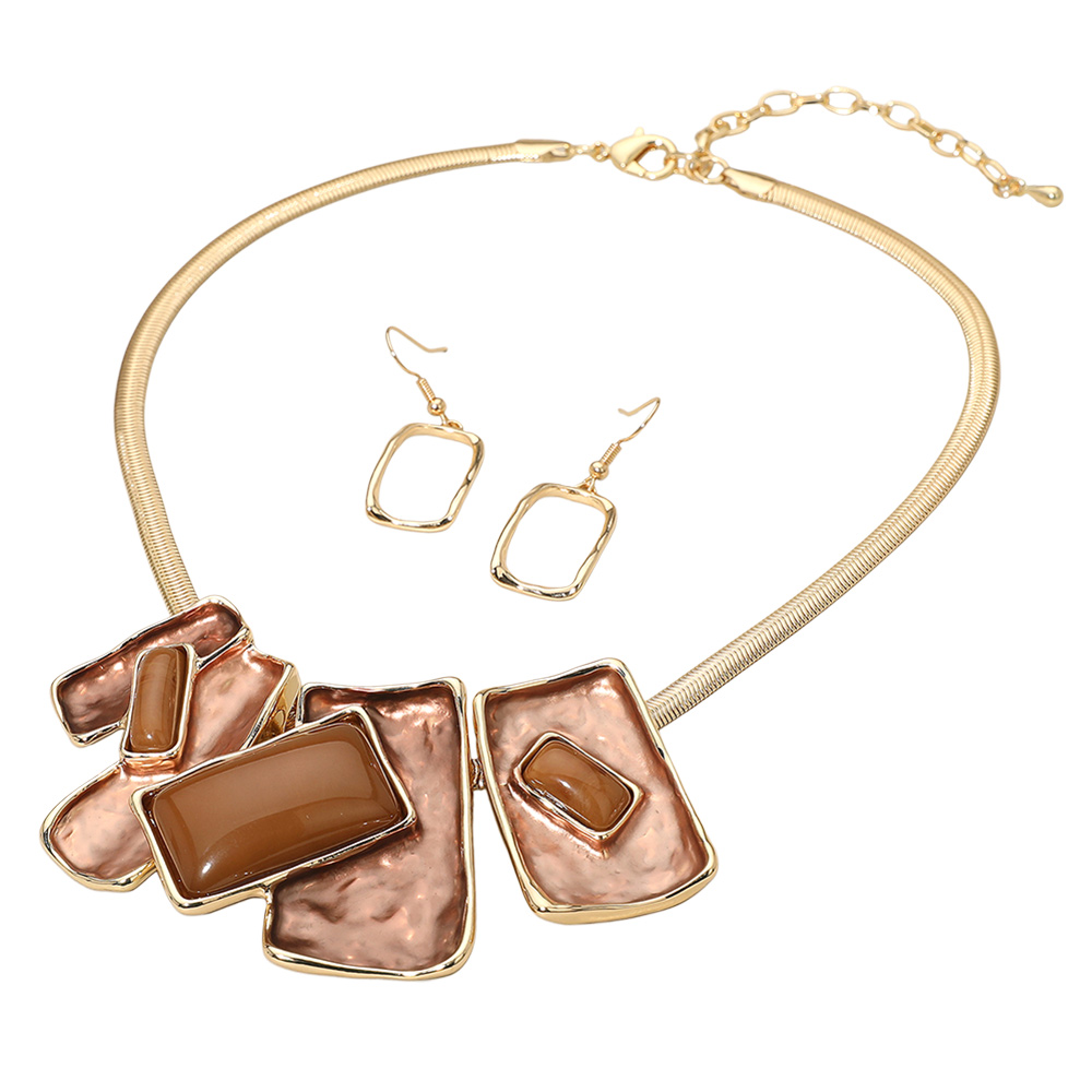 • Stylish jewelry set featuring a bold geometric necklace with matching earrings, designed in an artistic modern style. Perfect for parties, evening wear, or everyday elegance. This contemporary set adds sophistication and a fashion-forward edge to any outfit.