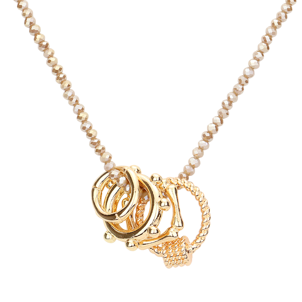 Geometric Open Metal Pendant Faceted Beaded Necklace
