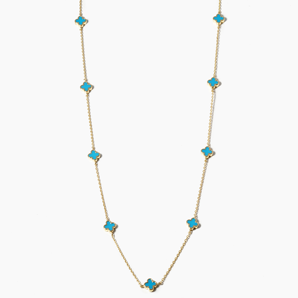 Quatrefoil Pendant Accent Dual Layer Beaded Necklace