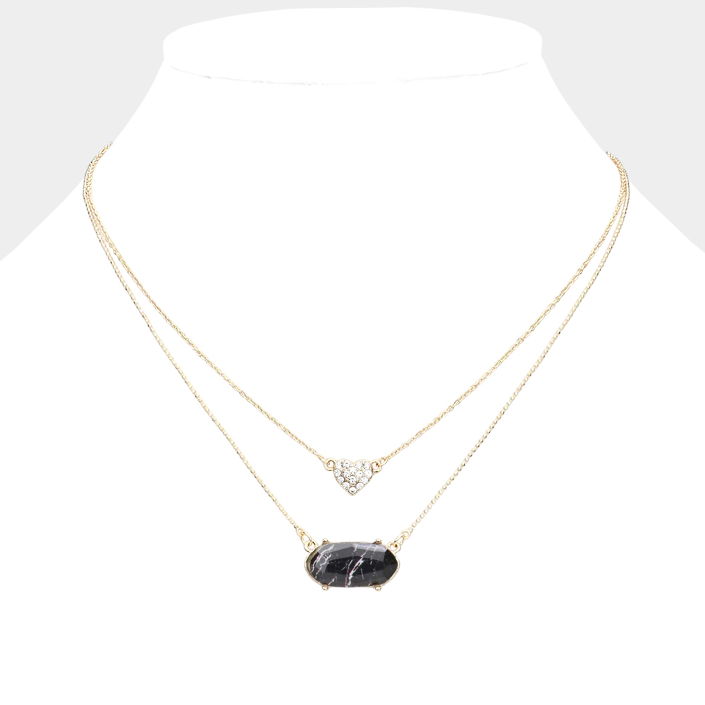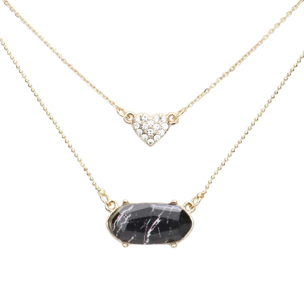 Heart Hexagon Bead Pendant Double Layered Necklace