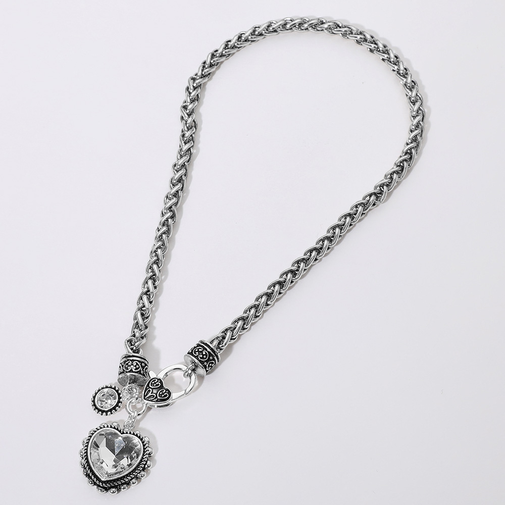 Heart Stone Pointed Pendant Antique Metal Necklace