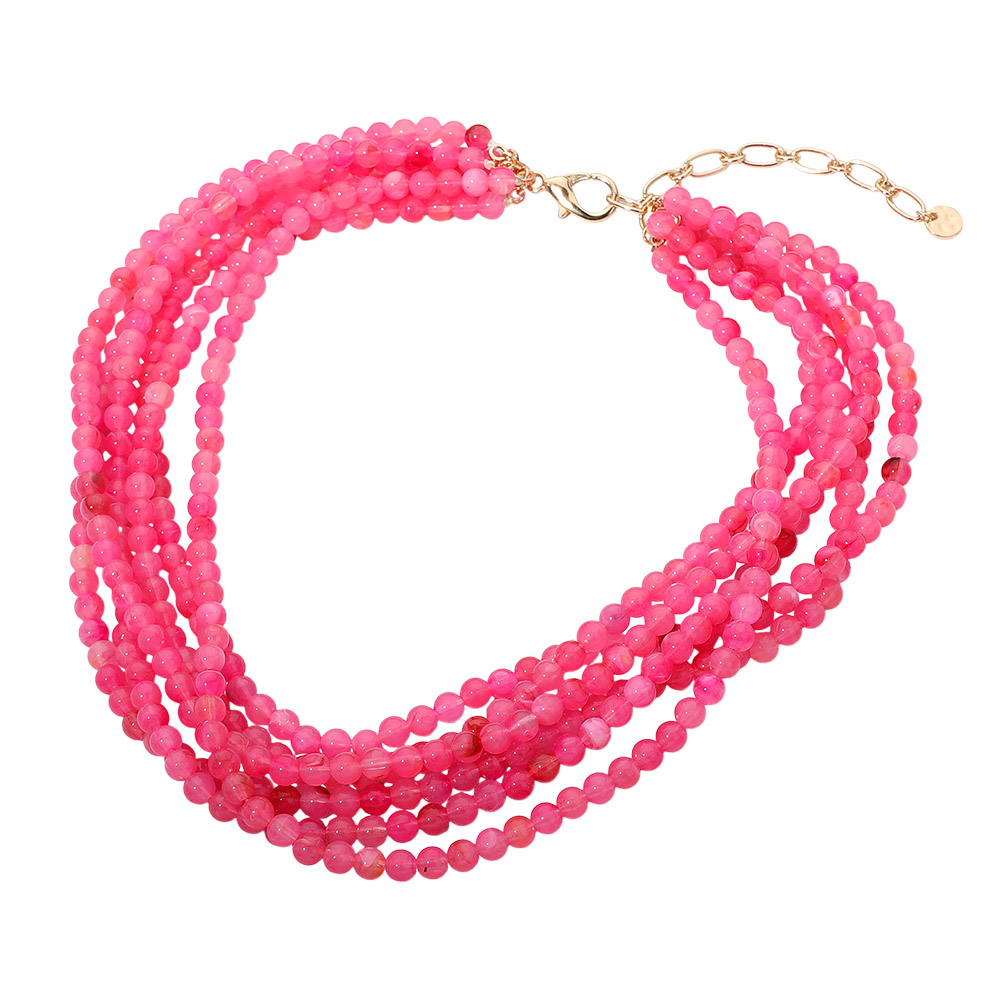 Marbled Resin Ball Beaded Multi Layered Statement Necklace