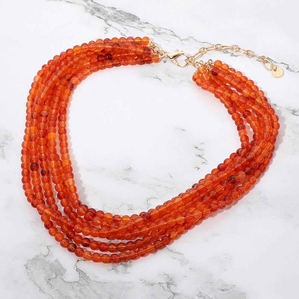 Marbled Resin Ball Beaded Multi Layered Statement Necklace