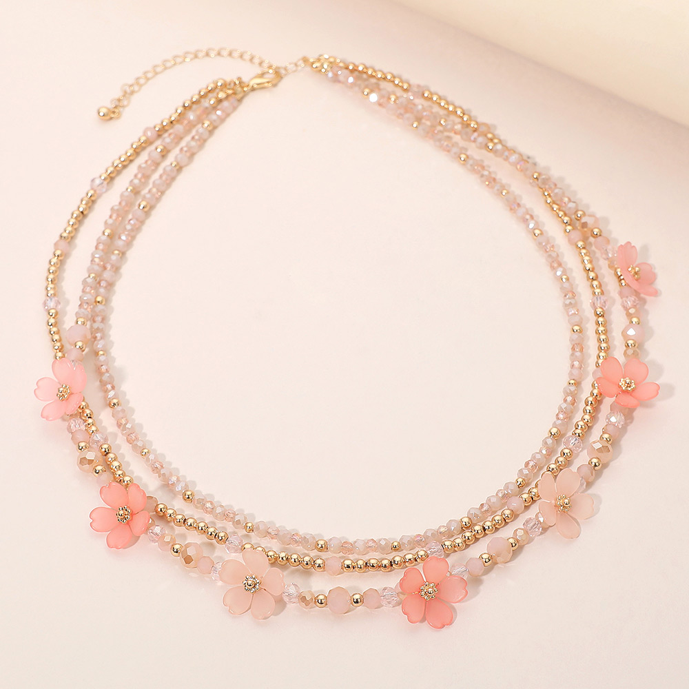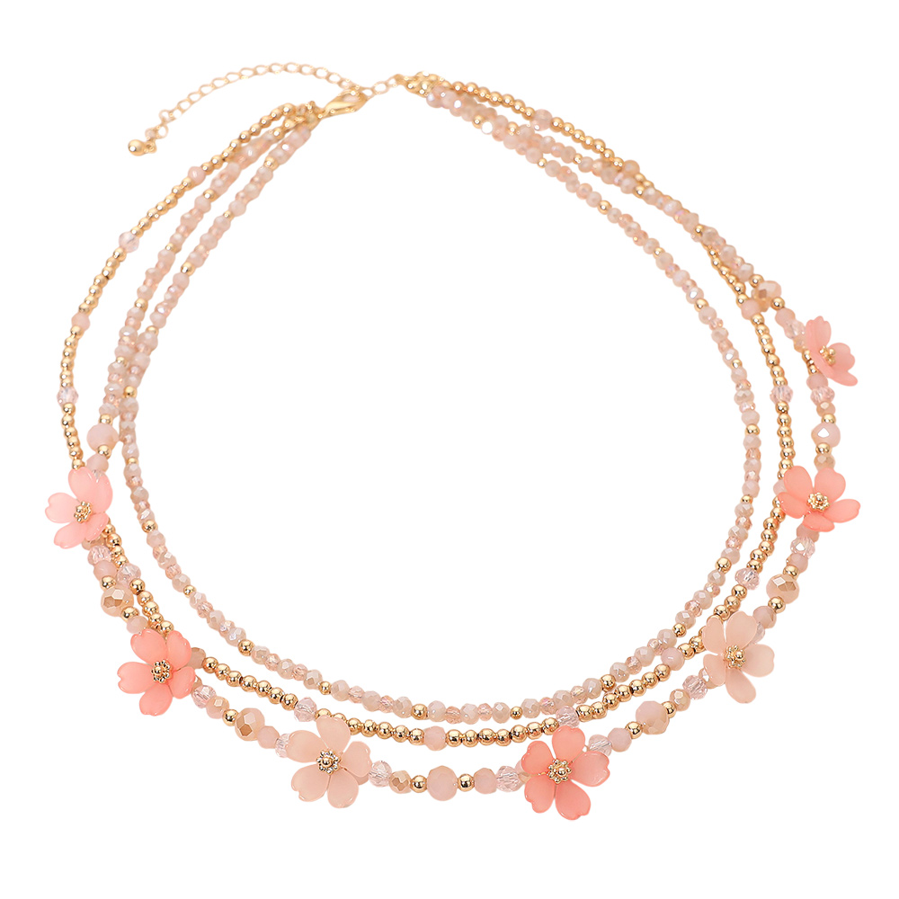 Details • Necklace Size : 15.5" + 3" L • Decor Size : 2" L • Embrace elegance with this layered floral beaded necklace. Featuring delicate multi-strand design with shimmering beads and petite flower accents, it adds a playful yet refined touch to any ensemble—perfect for both casual charm and special occasions. • Lead and Nickel Compliant