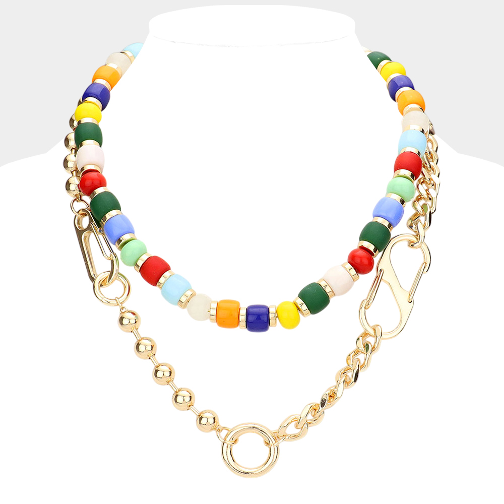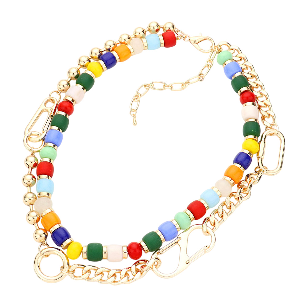 Metal Link Colorful Beaded Double Layered Necklace