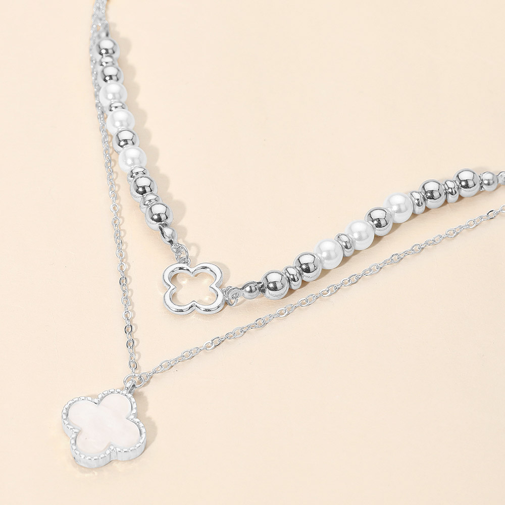 Details • Necklace Size : 16" + 3" L • Decor Size : 3" L • Pendant Size : 0.7" X 0.7" • Elegant layered necklace featuring beaded details and dual quatrefoil pendants for a refined, on-trend look. Designed to style beautifully alone or with other chains, it adds subtle charm to everyday outfits, evening ensembles, or thoughtful gift selections for any occasion. • Lead and Nickel Compliant