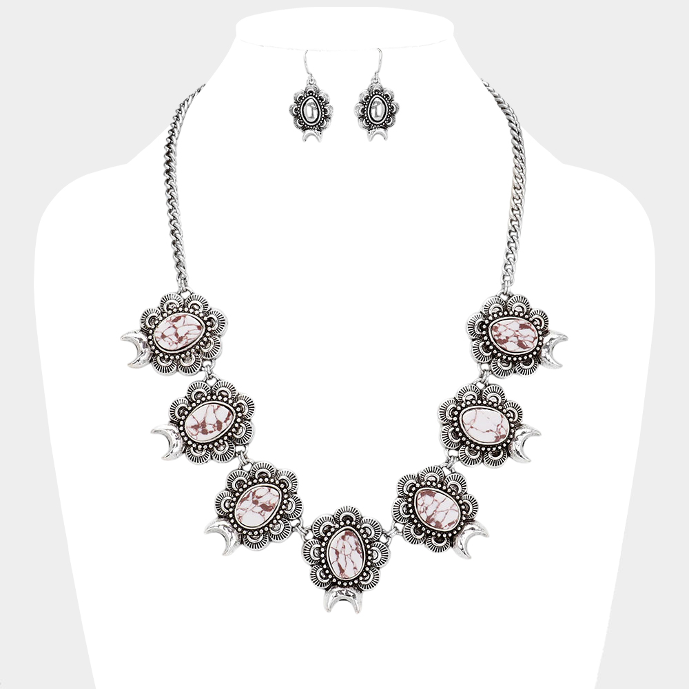 Antique Metal Boho Heart Stone Accent Stretch Bracelet
