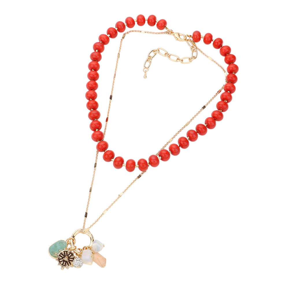 Natural Stone Shamballa Ball Ship Heel Pendant Double Layered Necklace