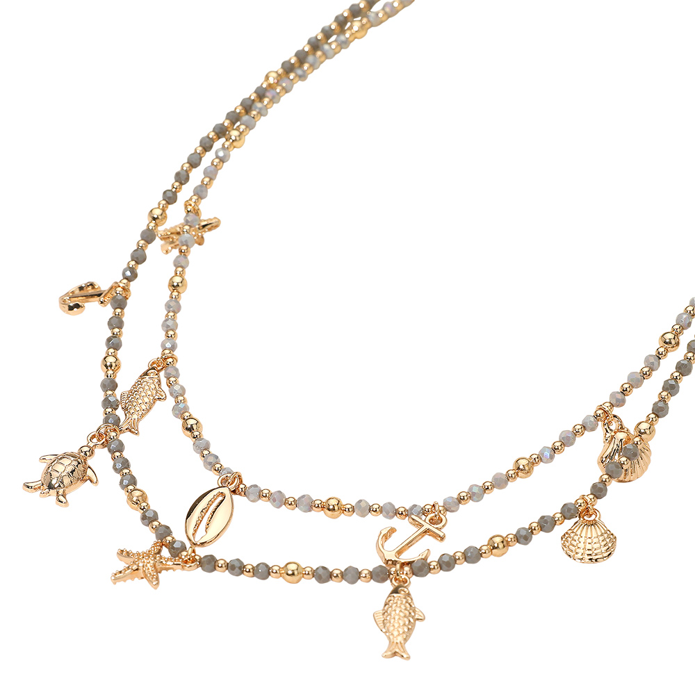 Ocean Inspired Charm Faceted Beaded Double Layered Necklace