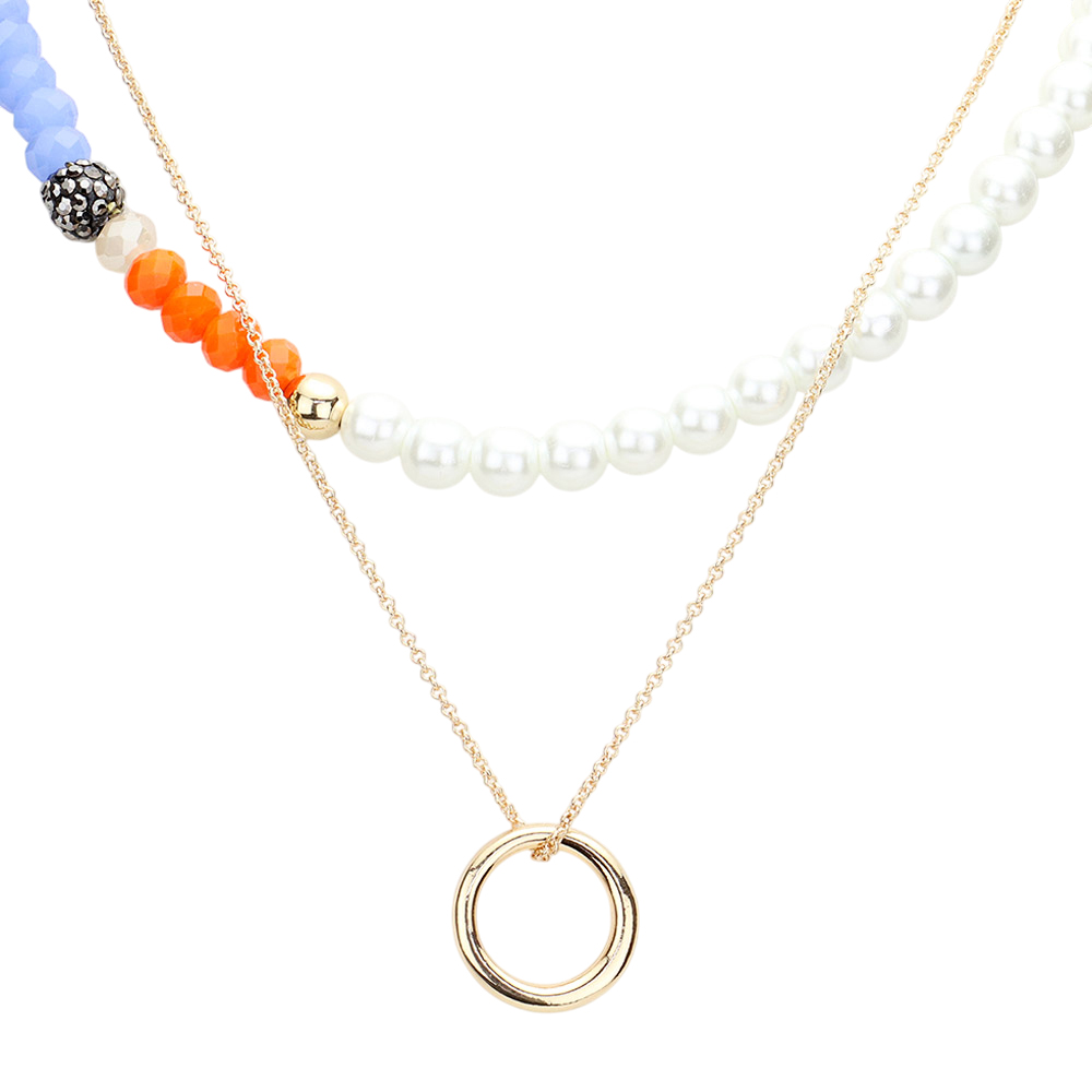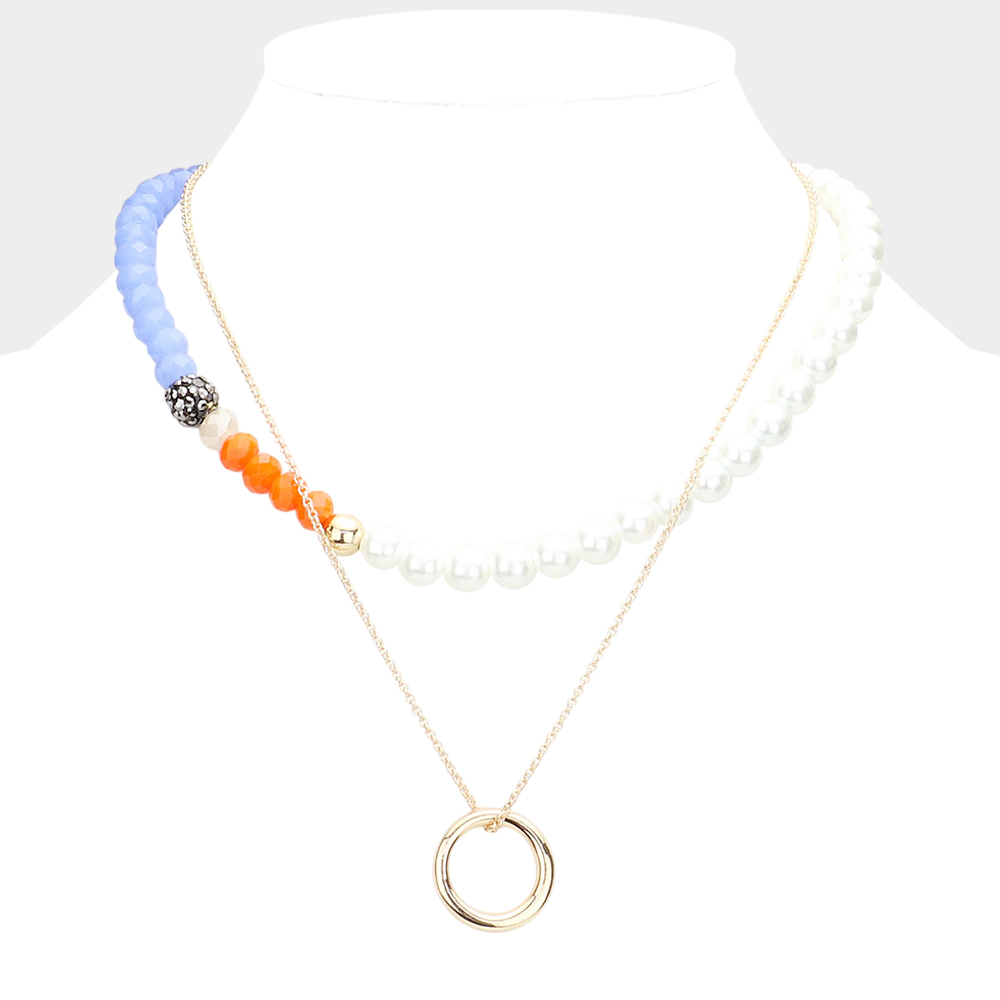Open Metal Circle Pendant Pearl Shamballa Ball Faceted Beaded Necklace