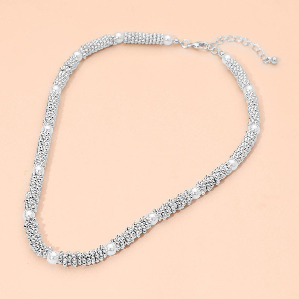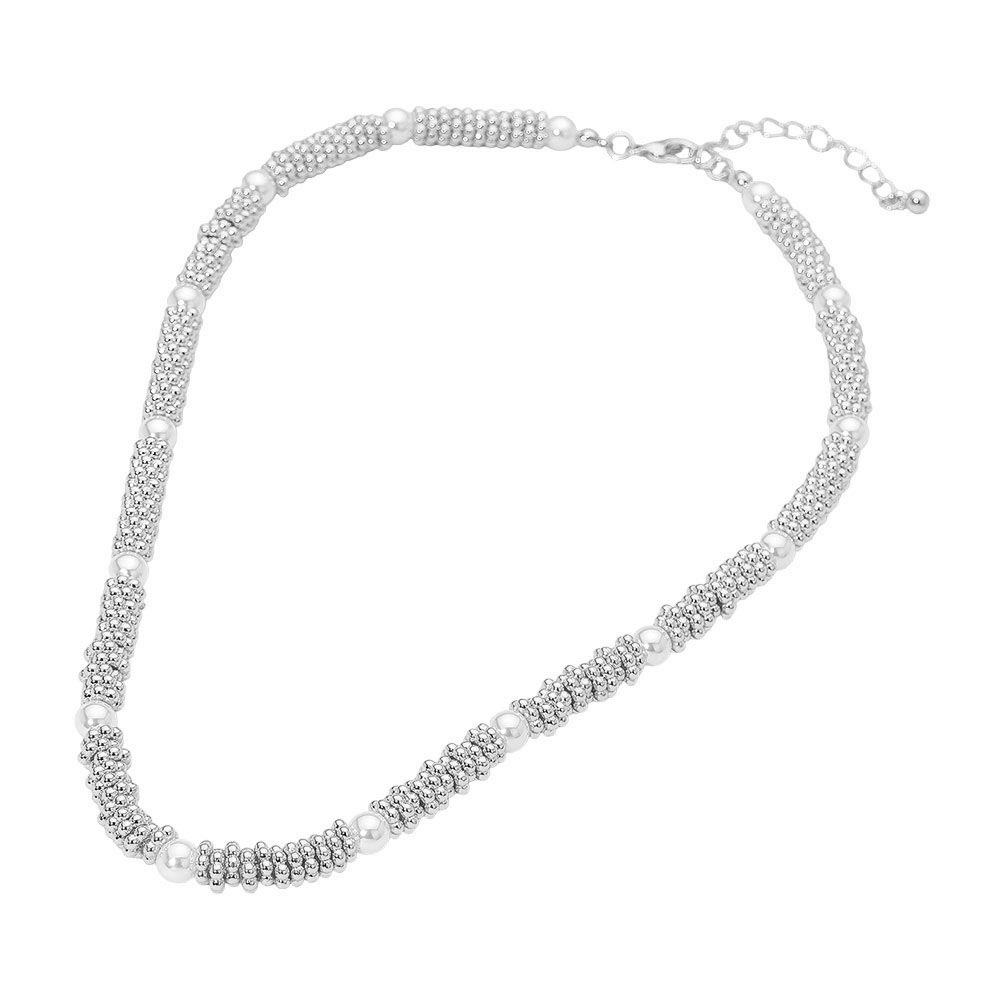 Pearl Accent Textured Metal Tube Beaded Necklace Pearl Accent Textured Metal Tube Beaded Necklace Pearl Accent Textured Metal Tube Beaded Necklace