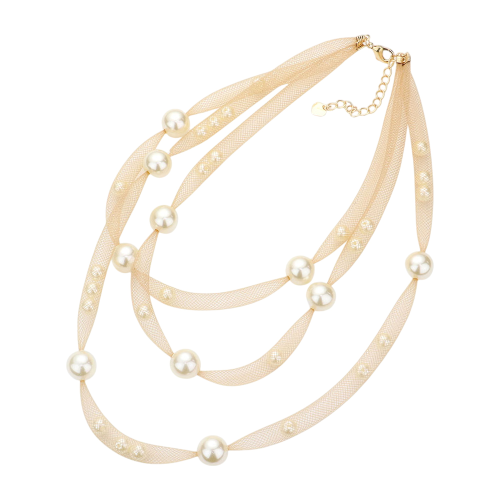 Pearl Accented Triple Layered Mesh Bib Necklace