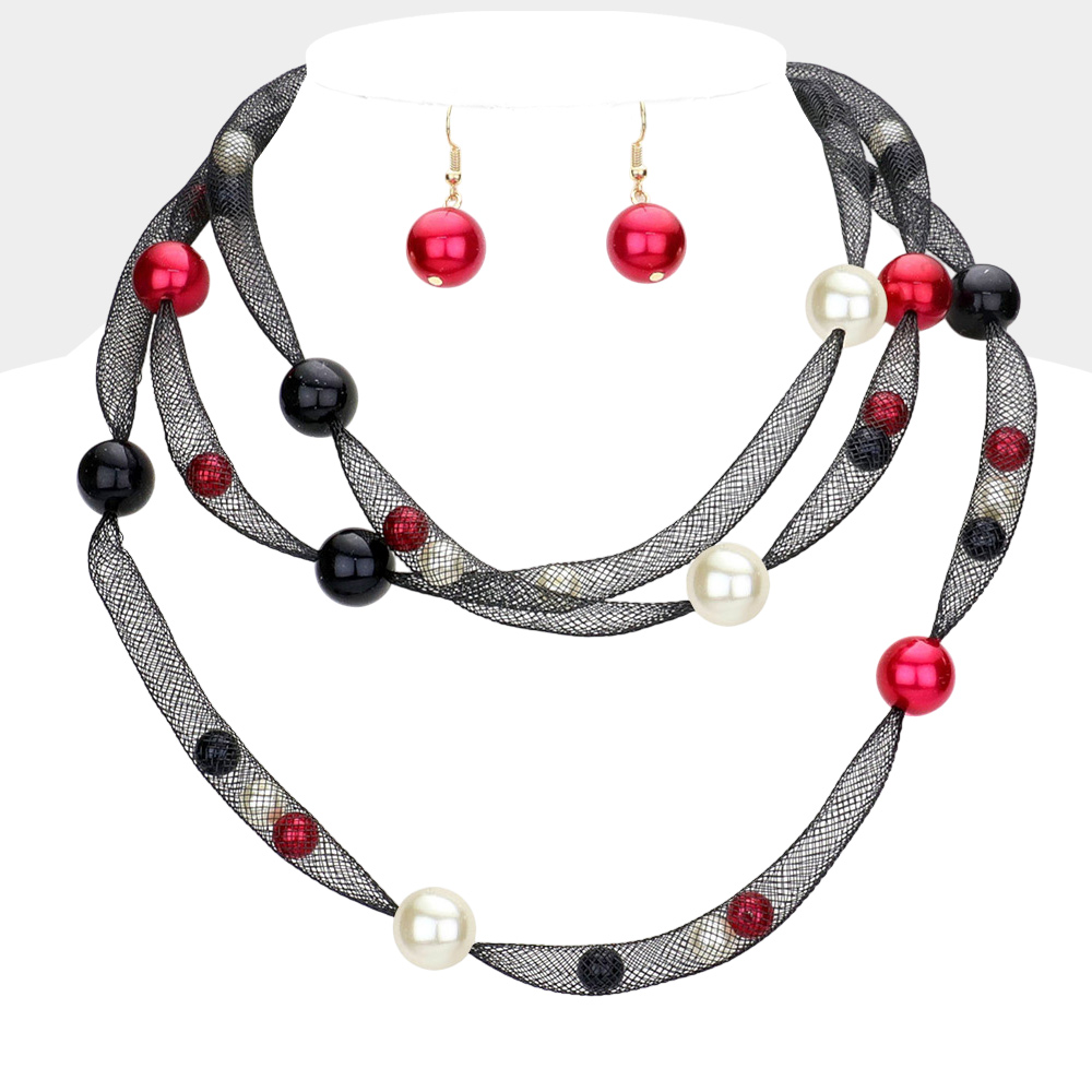 Pearl Accented Triple Layered Mesh Bib Necklace