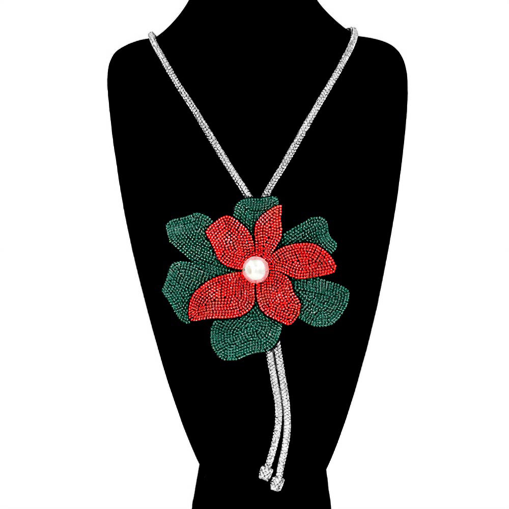 Details • Size : 44" L • Pendant Size : 6.25" X 5" • Showcase your style with this statement necklace featuring an intricately beaded flower pendant and a central accent bead. Designed with an adjustable cord for versatile wear, this piece adds artistic elegance and eye-catching charm to any outfit, from casual to dressy. • Lead and Nickel Compliant