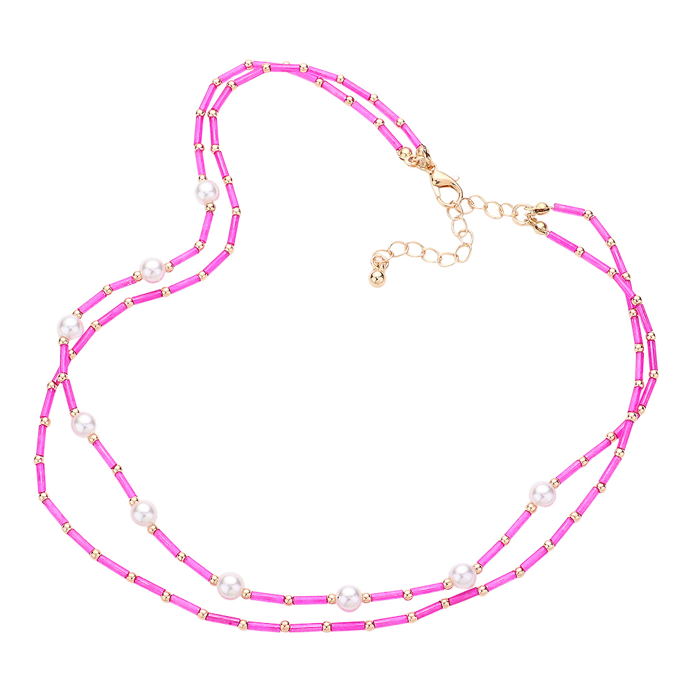 Pearl Station Tube Beaded Double Layered Necklace