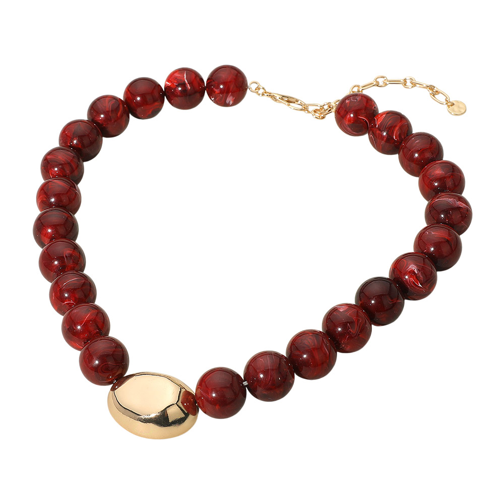 • Make a bold impression with this beaded statement necklace, featuring smooth round beads and a polished metallic accent. Perfect for elevating your style with a touch of artistic flair and modern charm.
