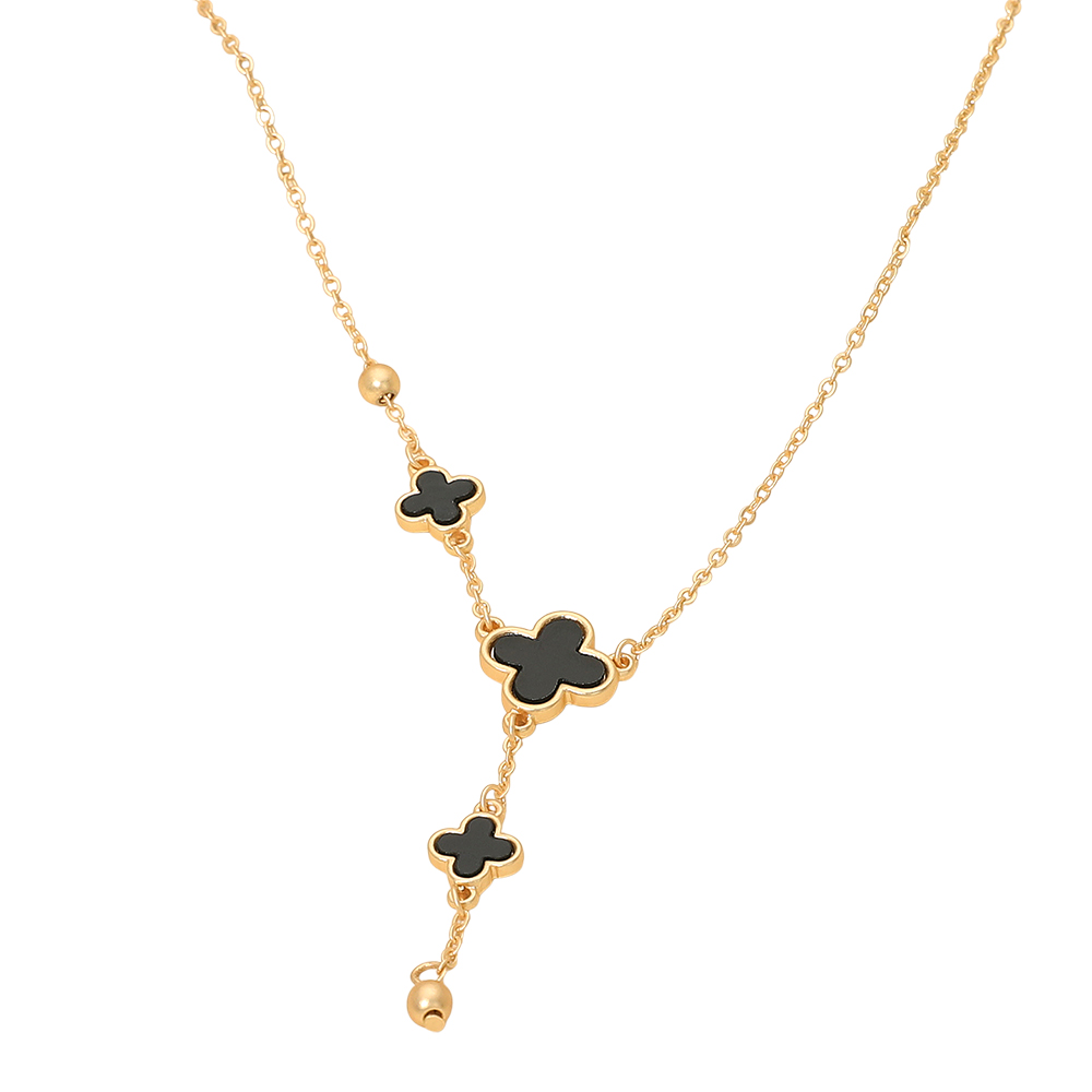 • This elegant quatrefoil charm necklace features a cascading trio of delicate motifs that bring a touch of luck and refinement to any look. Its graceful design adds subtle sophistication, making it perfect for layering or wearing solo as a chic everyday statement.