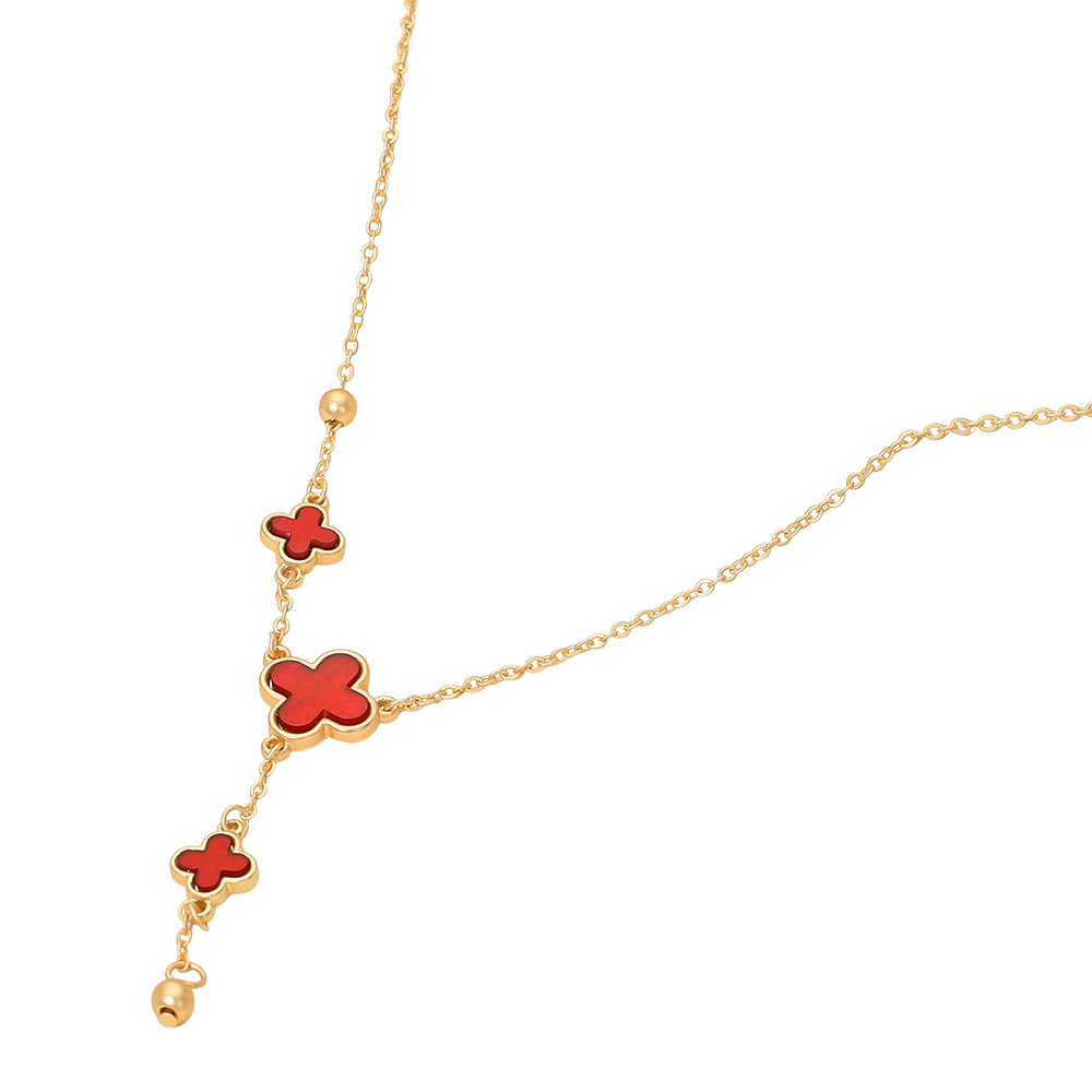 • This elegant quatrefoil charm necklace features a cascading trio of delicate motifs that bring a touch of luck and refinement to any look. Its graceful design adds subtle sophistication, making it perfect for layering or wearing solo as a chic everyday statement.