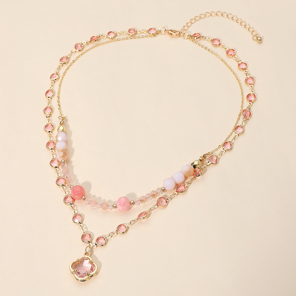 Details • Necklace Size : 16" + 3" L • Decor Size : 3" L • Pendant Size : 0.6" X 0.6" • Stylish dual-layer necklace with intricate bead detailing and a statement quatrefoil pendant for a refined, modern accent. Designed to elevate casual looks or complement evening wear, it layers beautifully with other pieces and makes a thoughtful gift choice for any special occasion. • Lead and Nickel Compliant