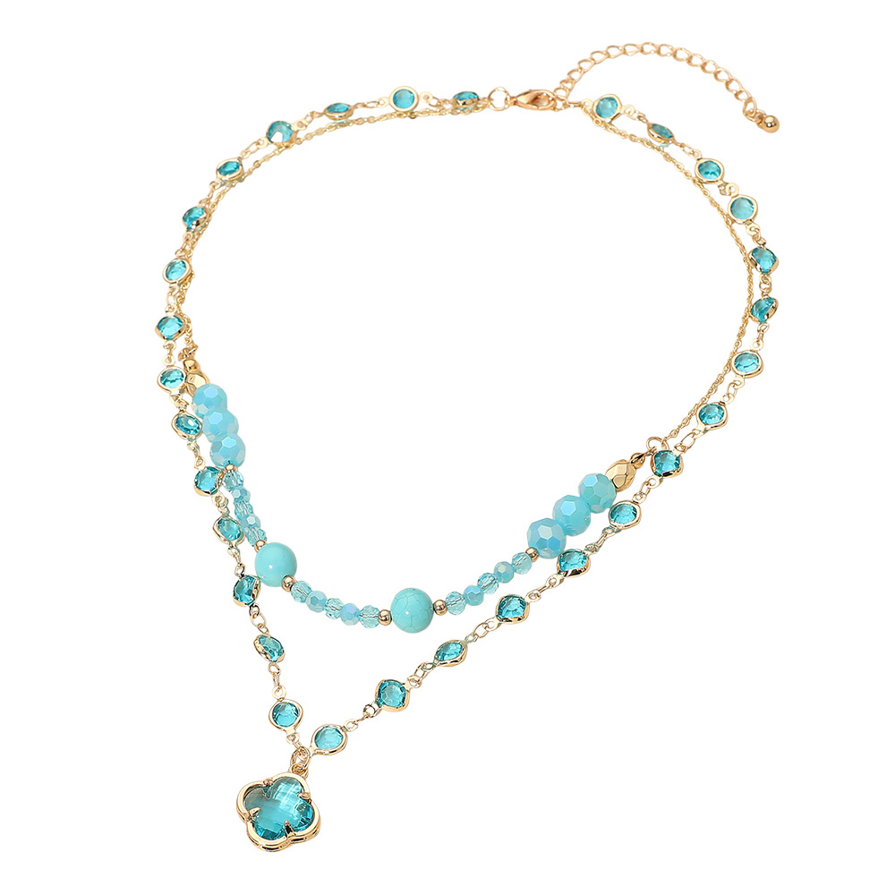 Details • Necklace Size : 16" + 3" L • Decor Size : 3" L • Pendant Size : 0.6" X 0.6" • Stylish dual-layer necklace with intricate bead detailing and a statement quatrefoil pendant for a refined, modern accent. Designed to elevate casual looks or complement evening wear, it layers beautifully with other pieces and makes a thoughtful gift choice for any special occasion. • Lead and Nickel Compliant