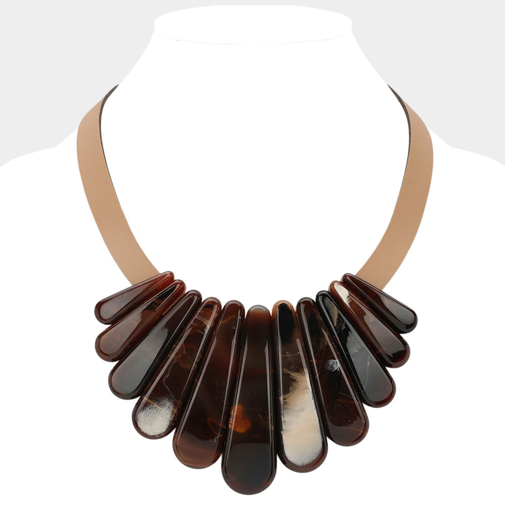 Resin Long Teardrop Plate Faux Leather Statement Necklace